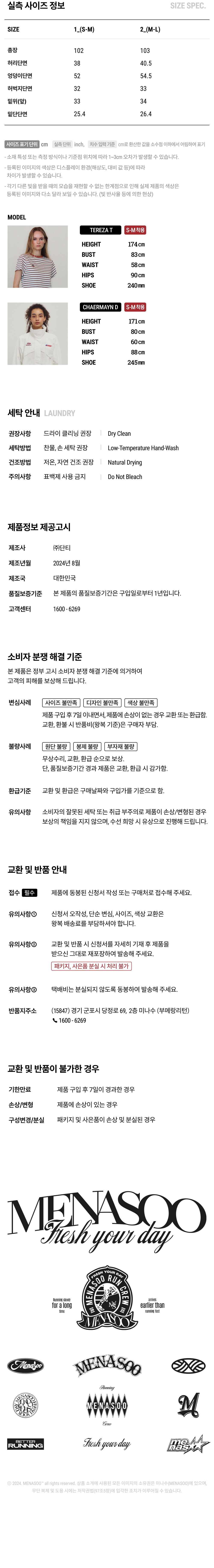 <24 F/W> MENASOO' 2024 Fall Collection. - 이용하시는 기기의 디스플레이마다 색 재현율이 다르므로, 등록된 이미지와 실물 간 색상 차이가 커 보일 수 있습니다. - 상품 단독 촬영 이미지가 비교적 실물과 유사하오나, 실제로 인식되는 색상은 주변 환경 및 광량에 따라 크게 달라 보일 수 있습니다.