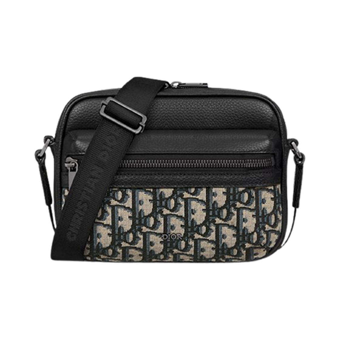 디올 미니 라이더 2.0 지퍼 메신저 백 베이지 블랙 디올 오블리크 자카드 블랙 그레인드 카프스킨