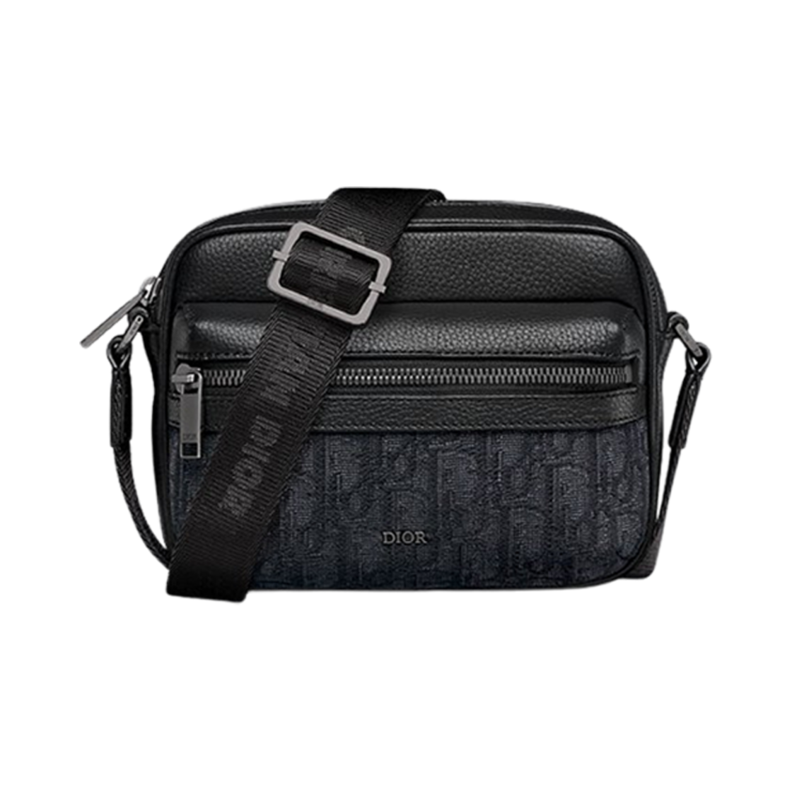 디올 미니 라이더 2.0 지퍼 메신저 백 블랙 디올 오블리크 자카드 앤 블랙 그레인드 카프스킨
