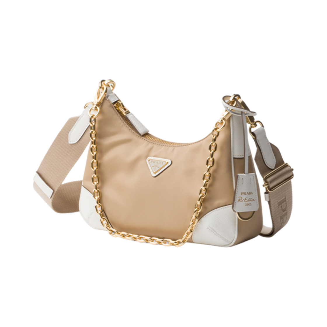 Prada Re-Edition 2005 Re-Nylon and Saffiano Leather Bag Camel White