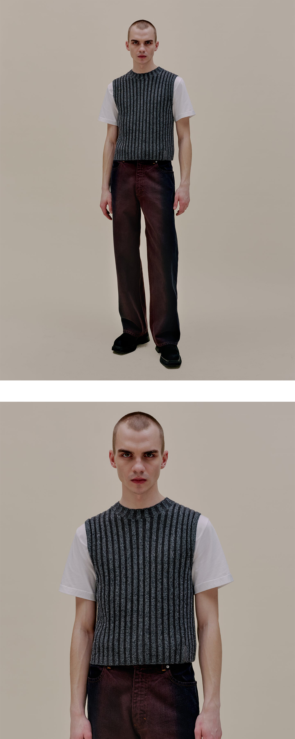고급스러운 소재감과 목까지 적용된 스트라이프 패턴이 매력적인 에크하우스 라타의 울 베스트입니다. - 100% 메리노 울 소재 - 옷 전체에 적용된 세로 스트라이프 패턴 - 밑단 로고 러버 택 디테일