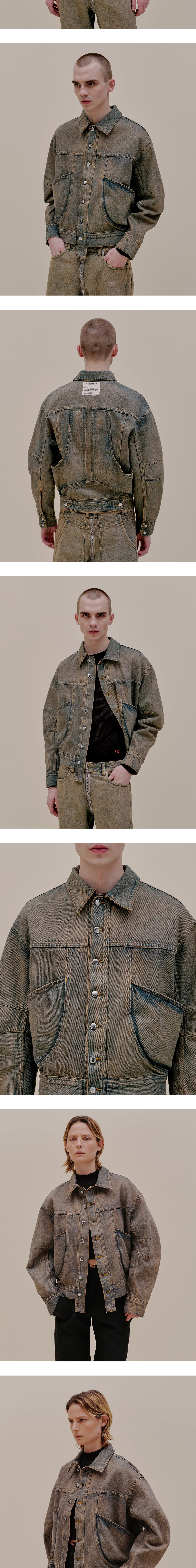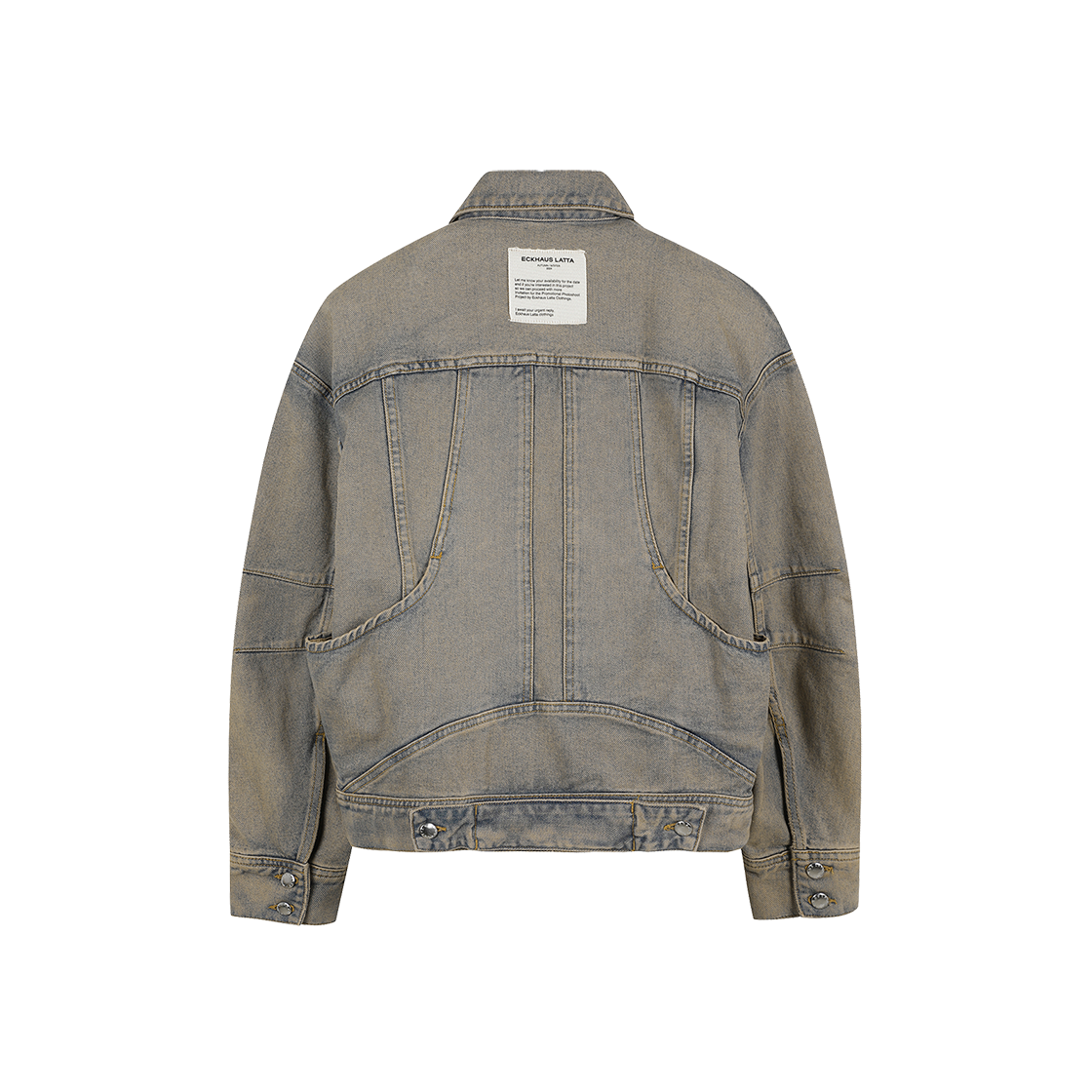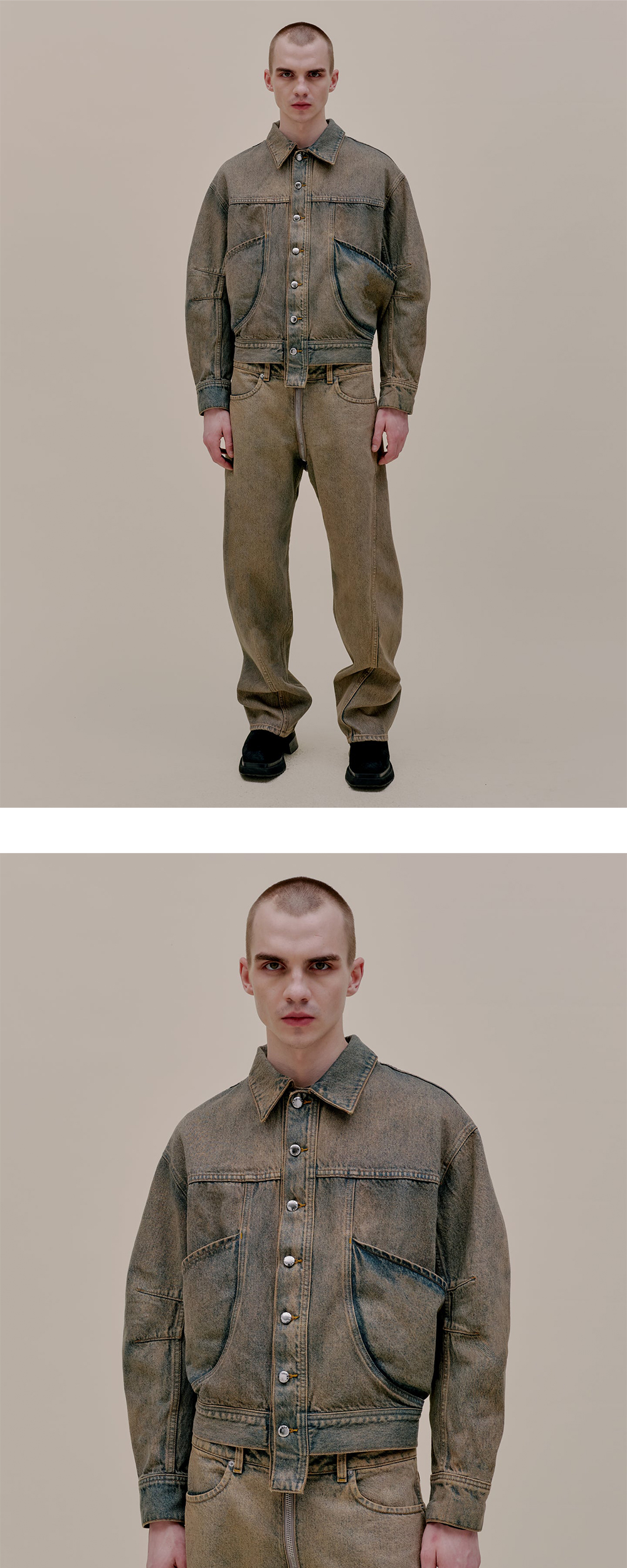 빈티지한 워싱감과 구조적인 디테일들이 돋보이는 에크하우스 라타의데님 자켓입니다. - 헤비웨이트 데님 소재 - 곡선형의 소매 및 다트 디테일 - 뒷면까지 이어지는 에크하우스 라타의 시그니처 포켓 디테일 - 과장된 버튼 플래킷 - 전/후면 및 소매의 로고가 각인된 버튼 - 후면 라벨 패치 디테일