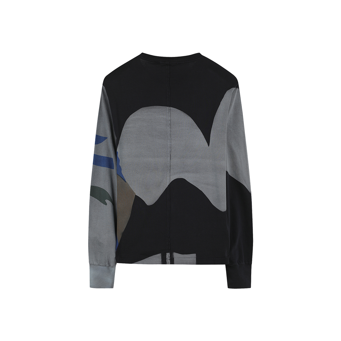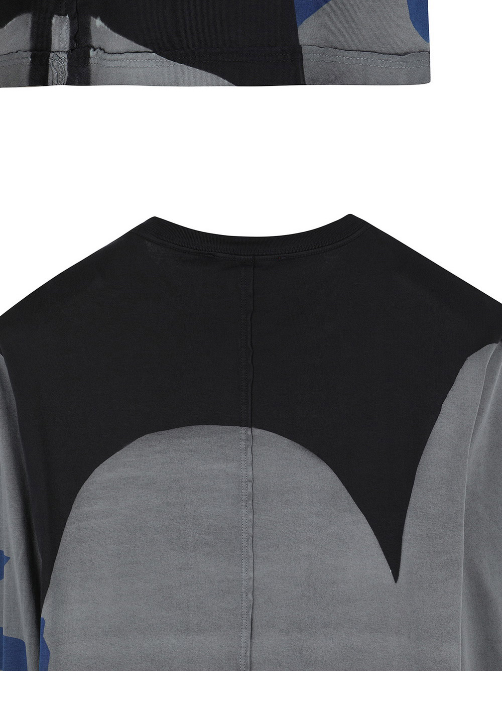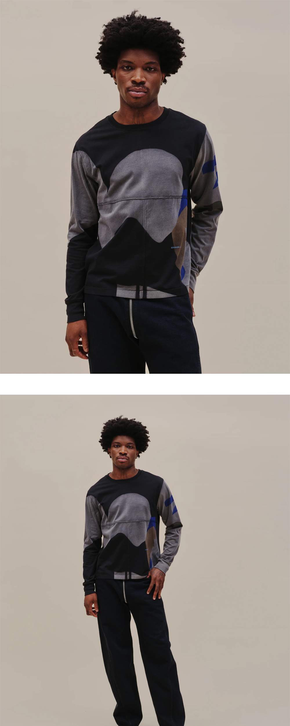 수작업으로 완성된 스텐실 염색으로 예술품을 연상시키는 에크하우스 라타의 롱 슬리브 티셔츠입니다. - 릴랙스 핏 - 전면 좌측 로고 스크린 프린팅 - 패턴 염색은 수작업 스텐실로 진행됨 - 러프한 마감의 심 디테일