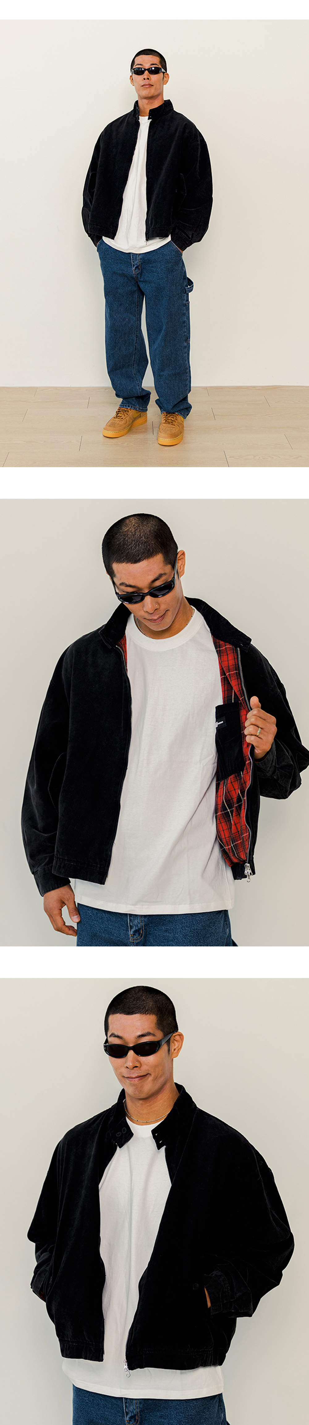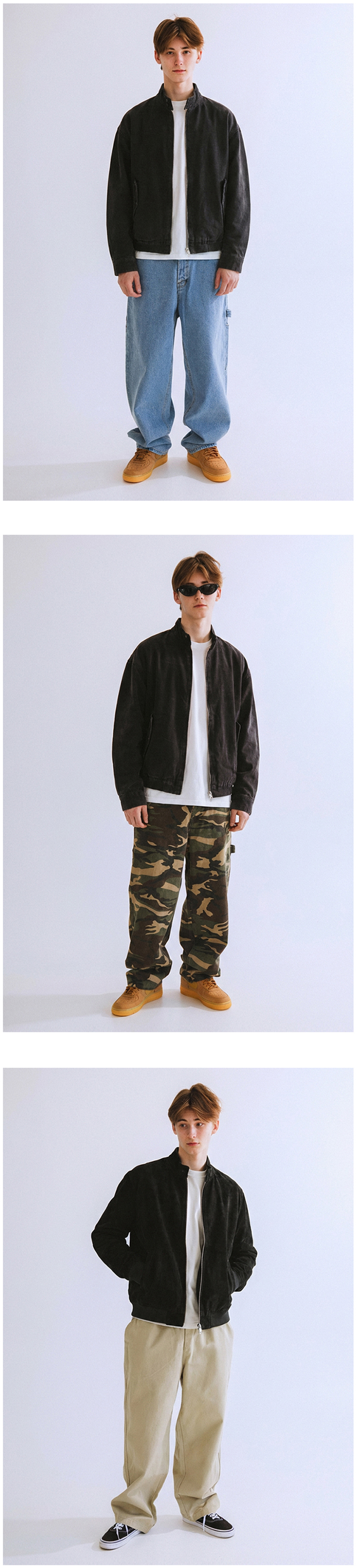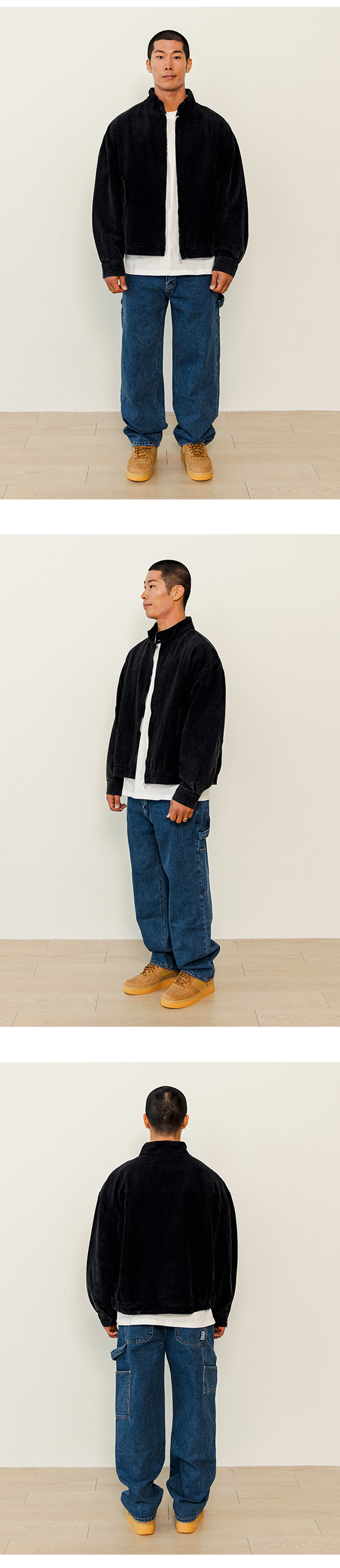 전통적인 해링턴 자켓의 디자인으로 자연스럽게 드랍된 어깨라인의 오버핏으로 제작되었습니다. 오래 착용하며 나오는 자연스러운 빈티지한 컬러감을 위해 바이오 워싱작업을 강하게 진행하였습니다.