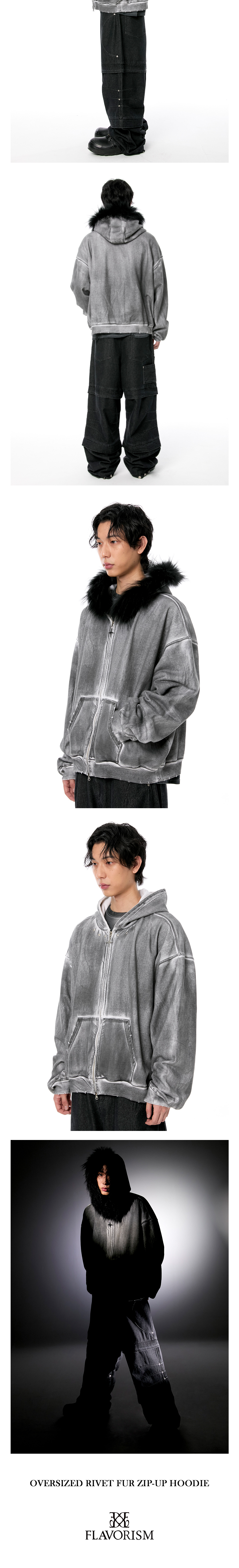플레이버리즘 오버사이즈 리벳 퍼 집업 후디 더티화이트