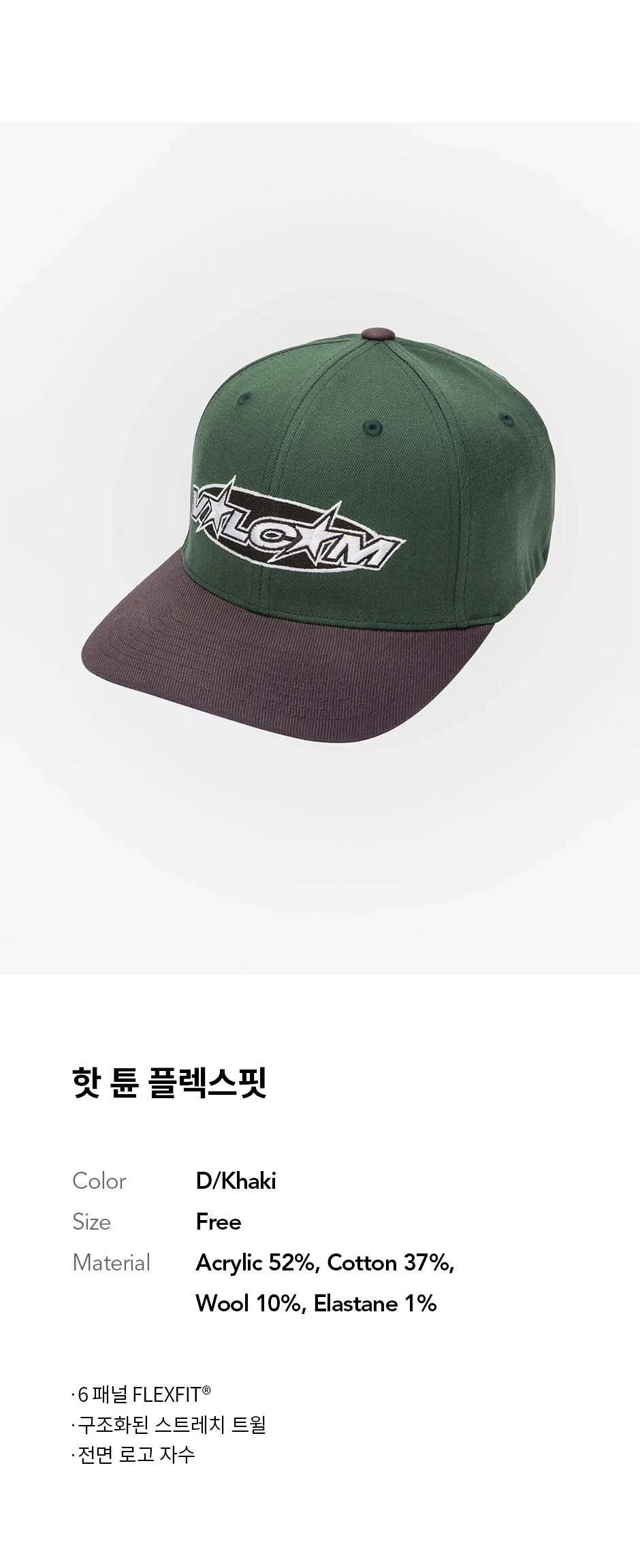 볼컴 핫 튠 플렉스핏 햇 다크 카키