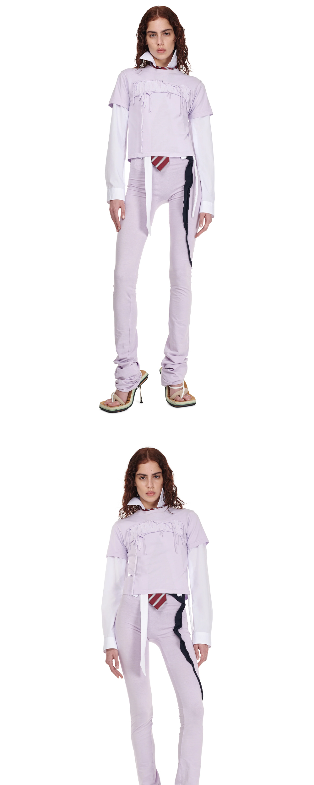 오토링거 우먼 디스트레스드 오토 핏 티셔츠 라일락 - 24FW