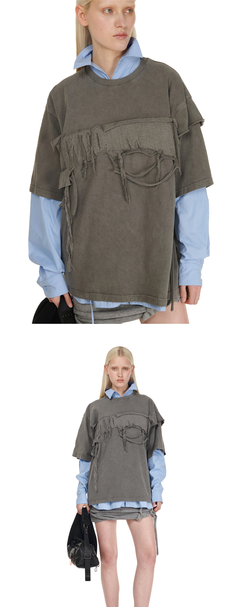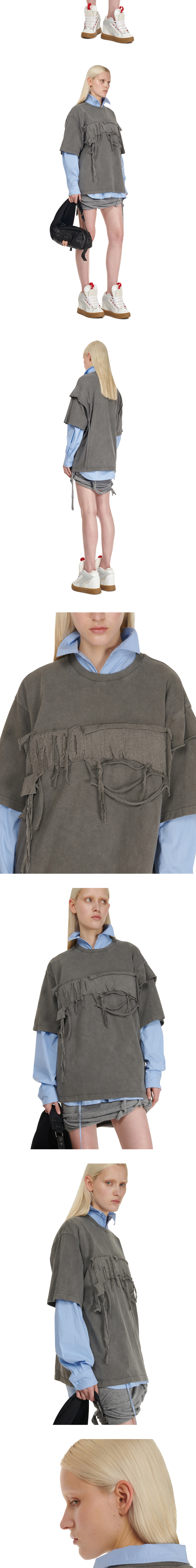 오토링거 우먼 디스트레스드 오버사이즈 티셔츠 그레이 - 24FW