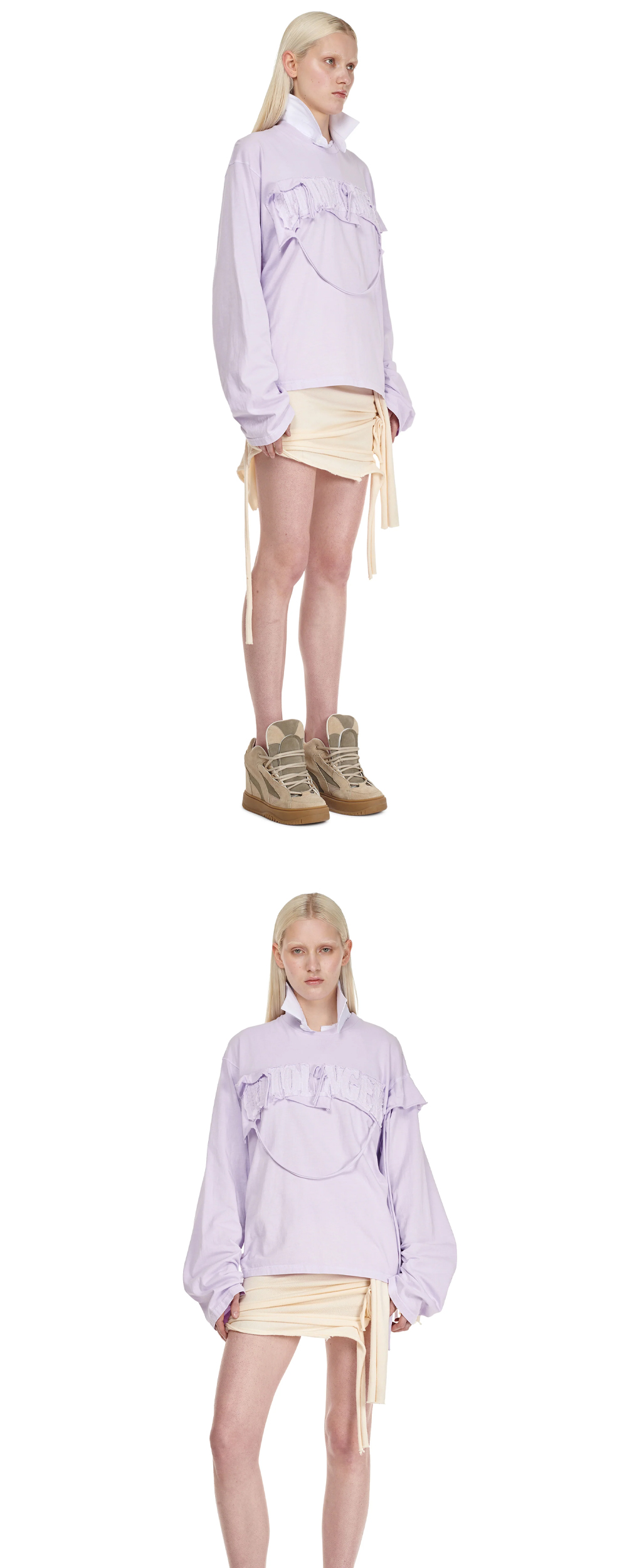 오토링거 우먼 디스트레스드 오버사이즈 롱슬리브 라일락 - 24FW