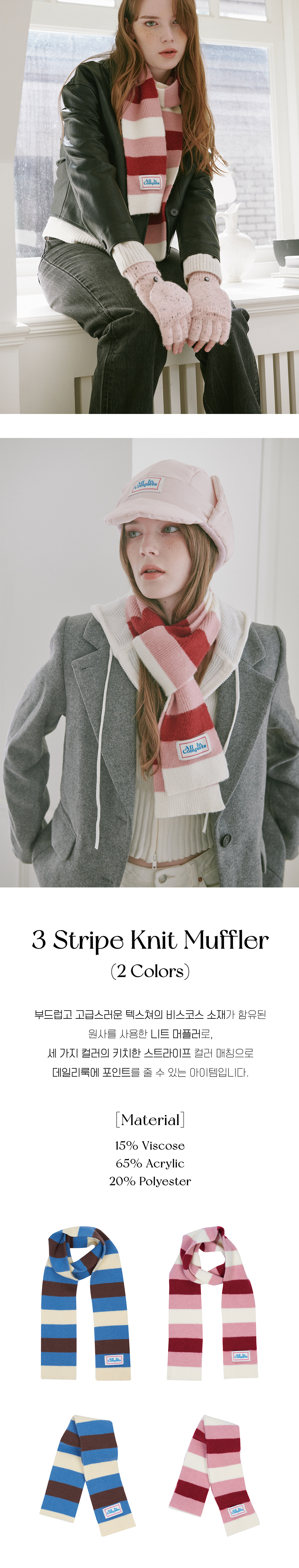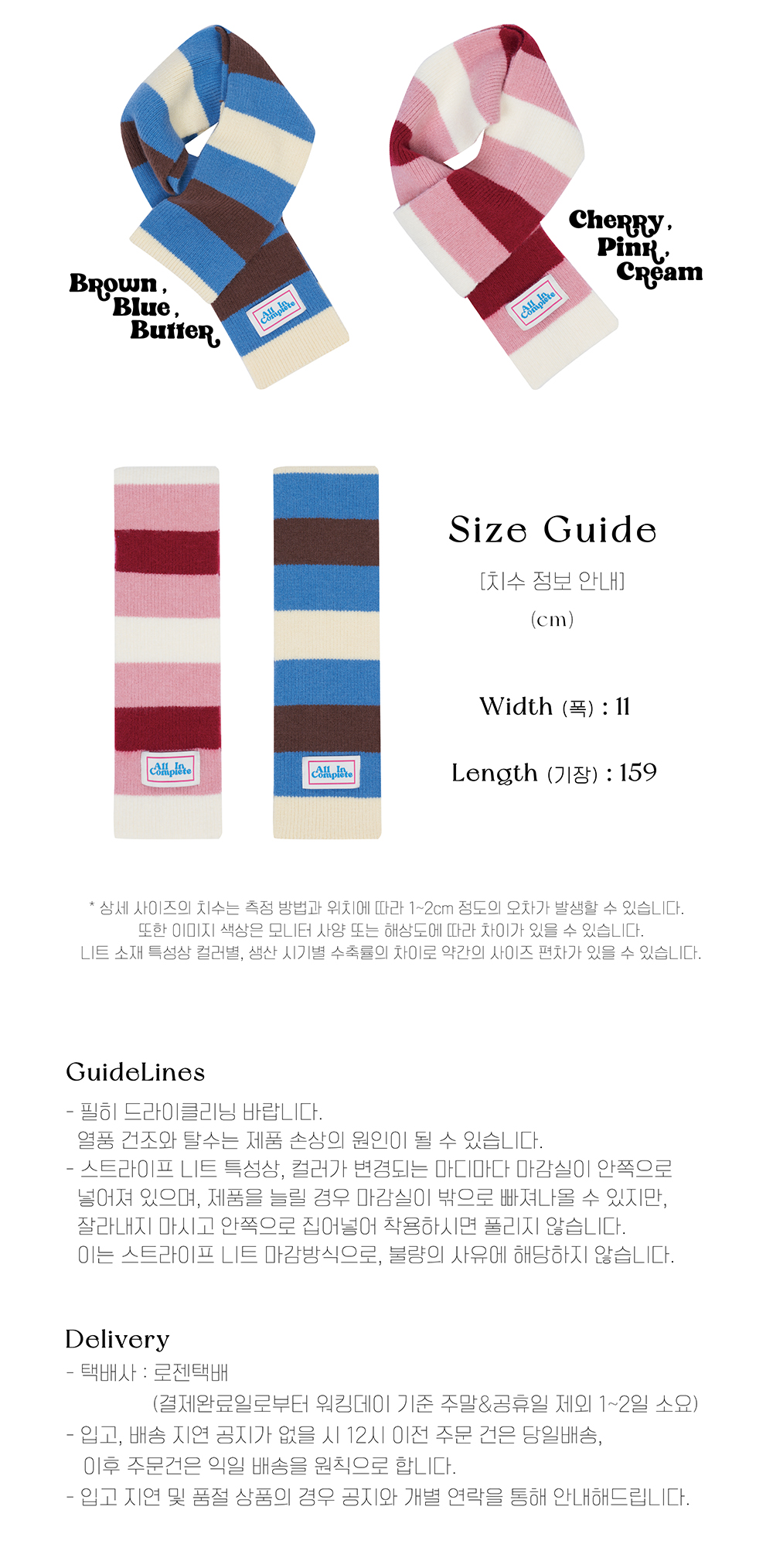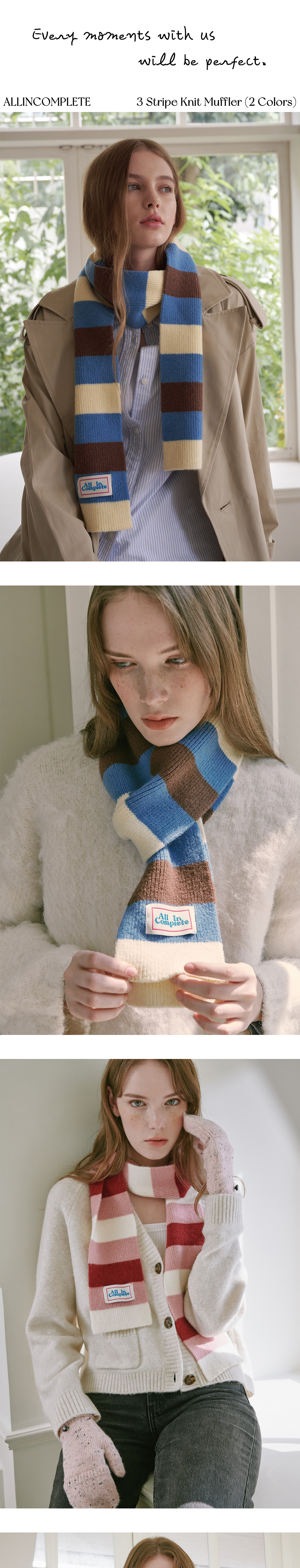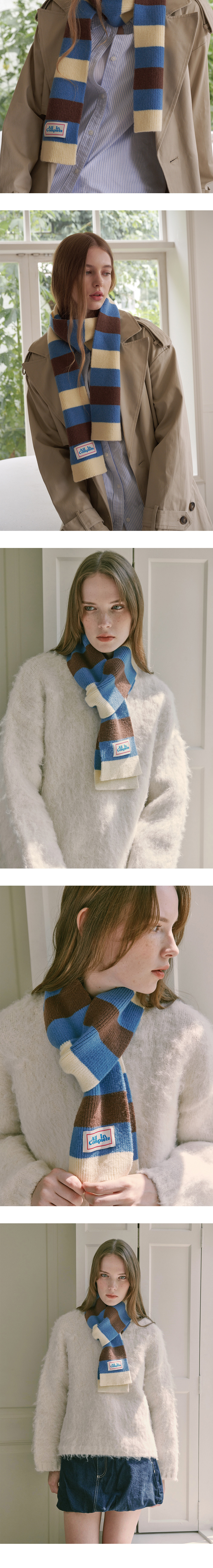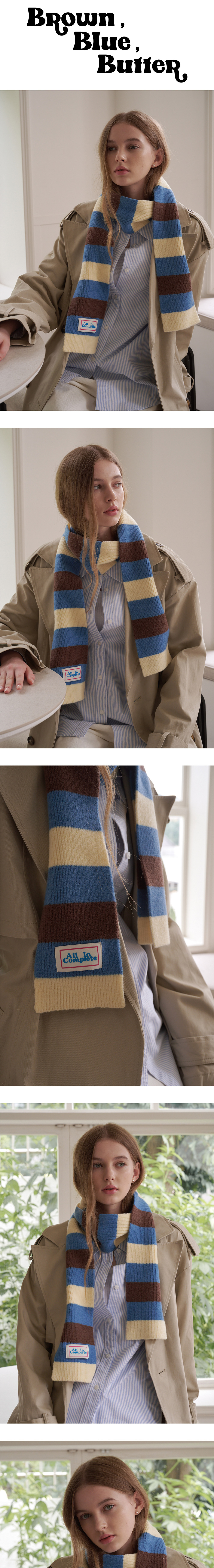 올인컴플리트 3 스트라이프 니트 머플러 브라운 블루 버터