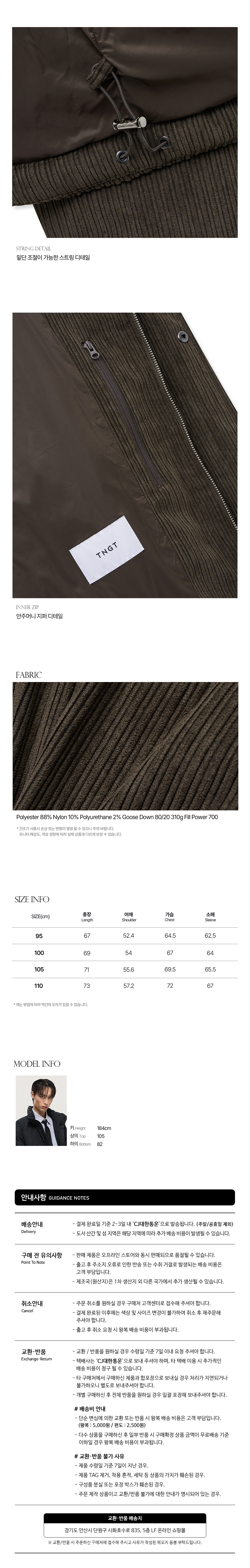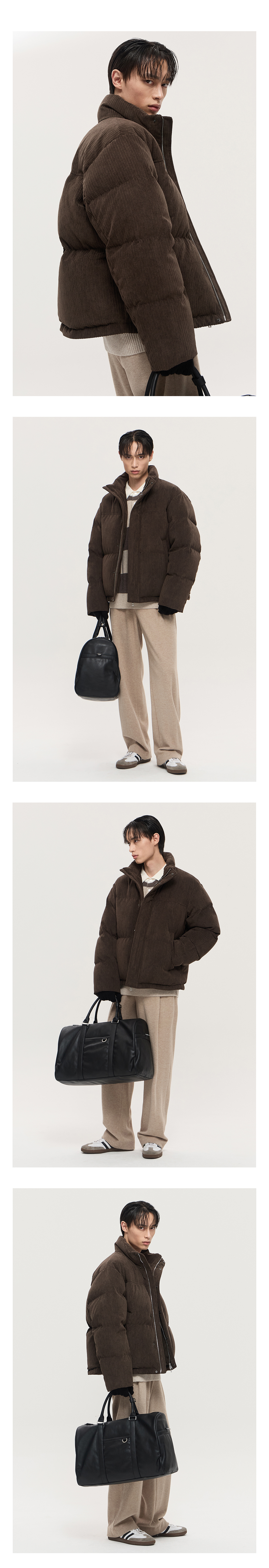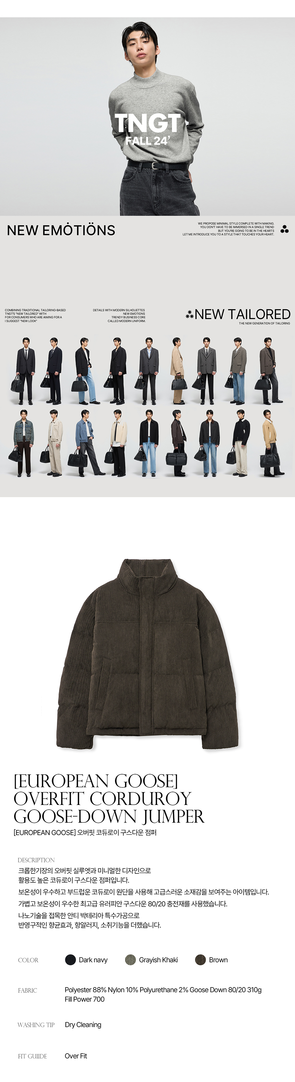티엔지티 유러피언 구스 브라운 오버핏 코듀로이 구스다운 점퍼