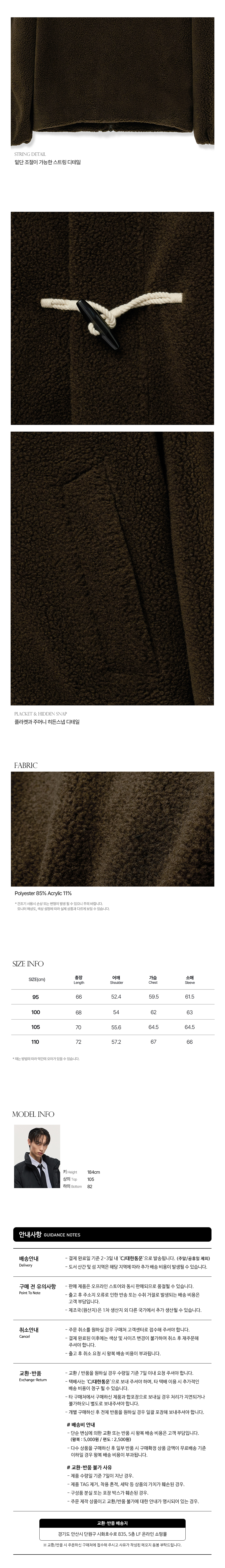 티엔지티 브라운 오버핏 헤비 플리스 더플 점퍼