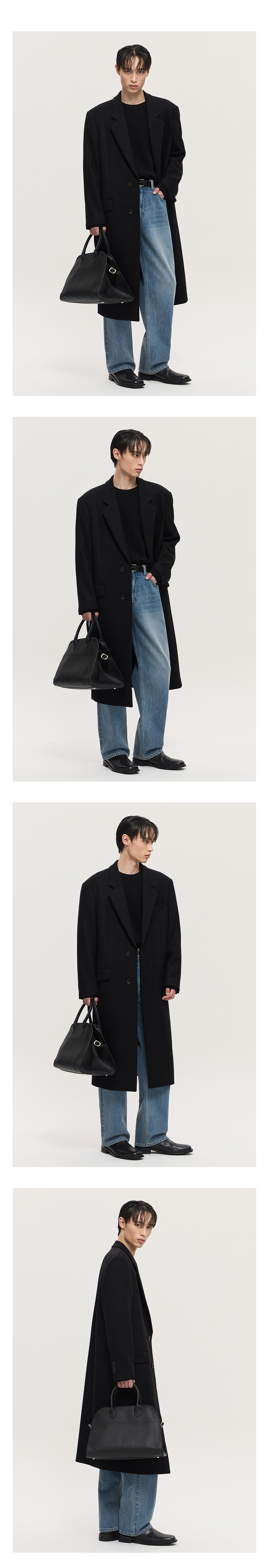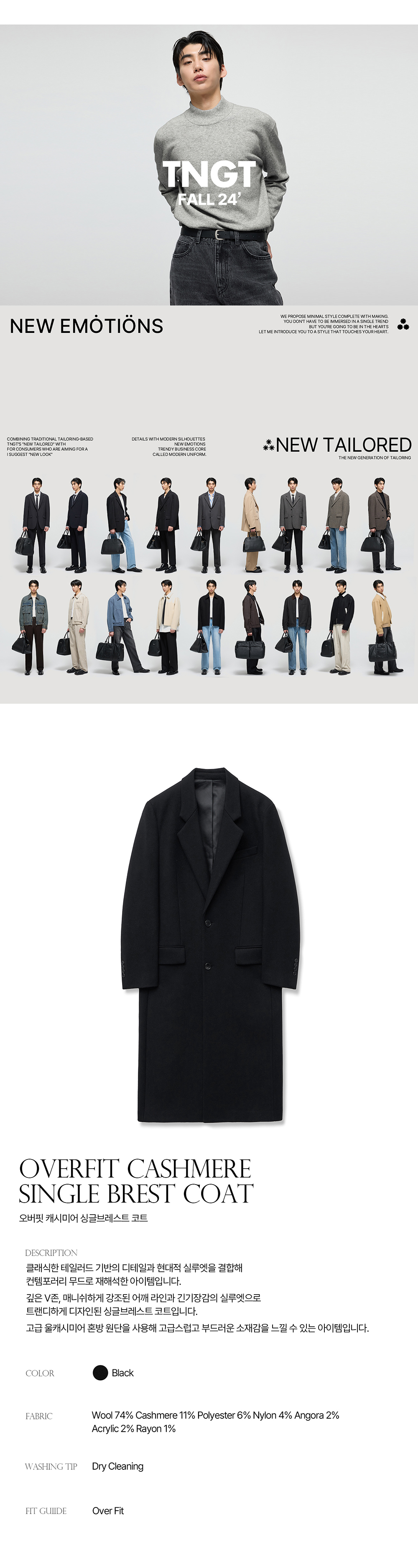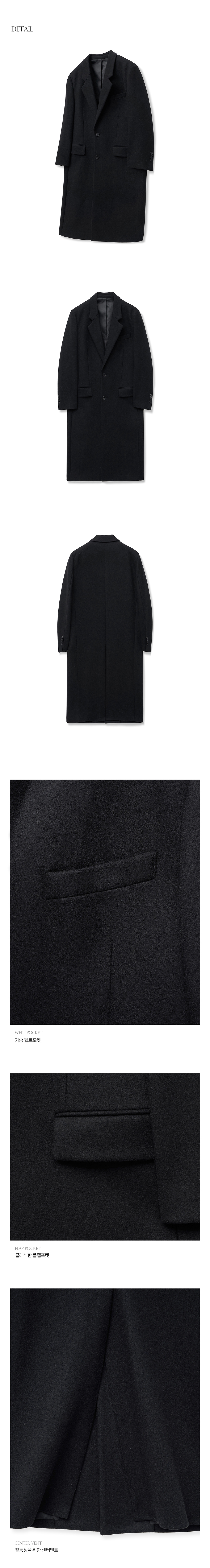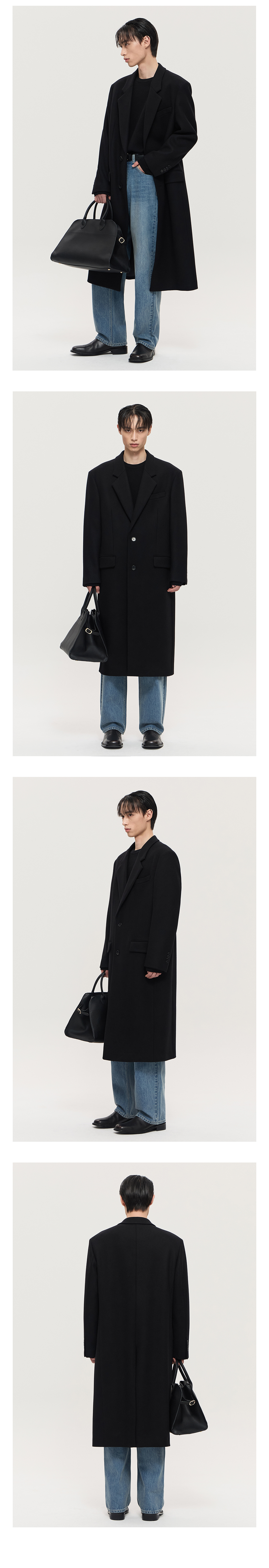 티엔지티 블랙 오버핏 캐시미어 싱글브레스트 코트