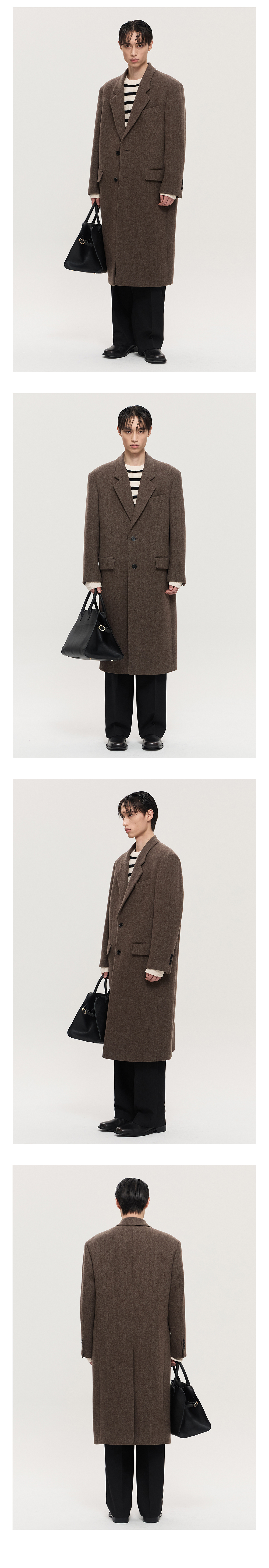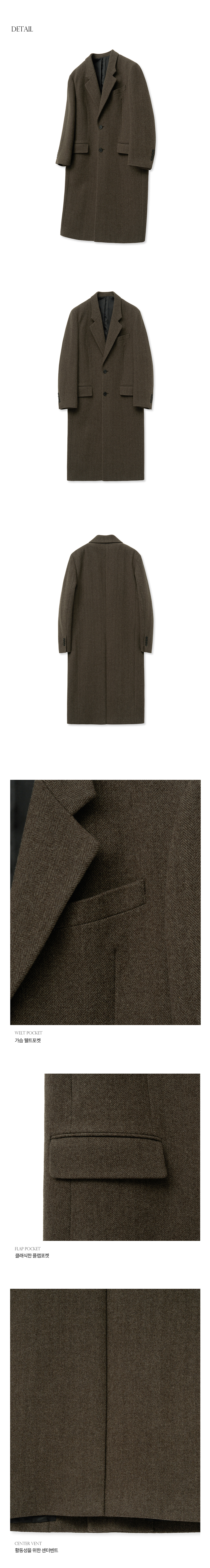 티엔지티 브라운 Redford 대디핏 헤링본 싱글브레스트 코트
