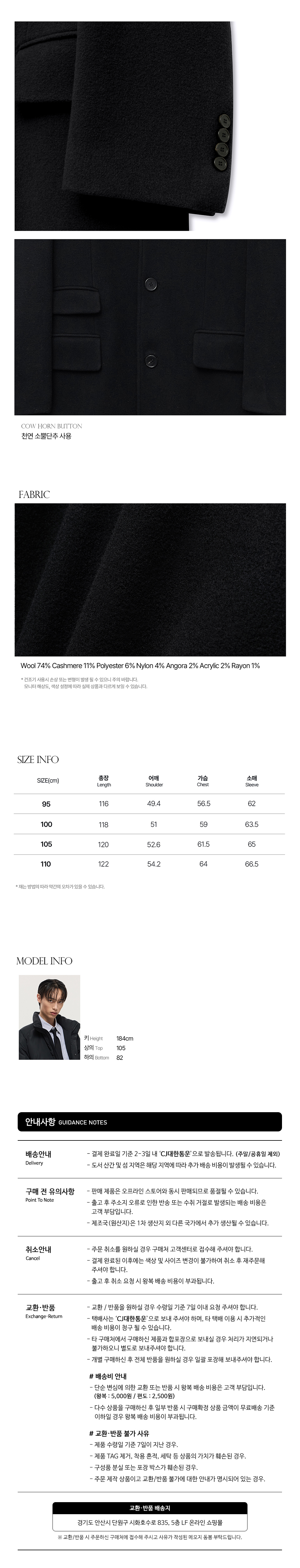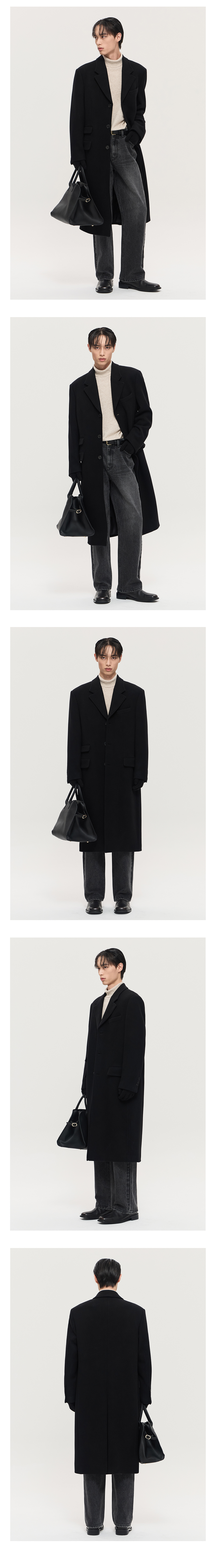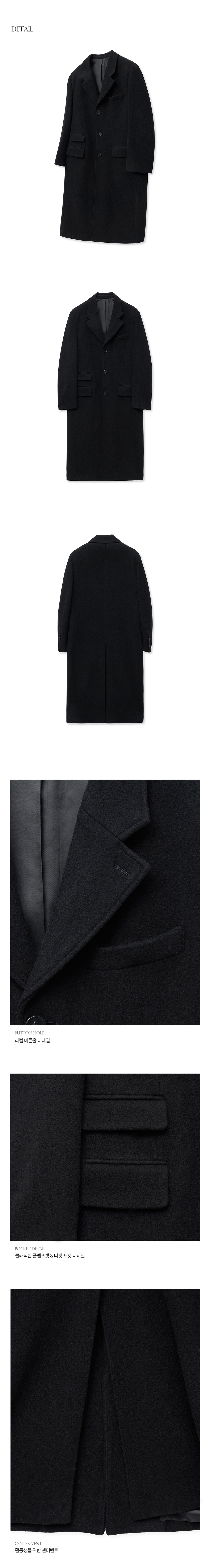 티엔지티 블랙 대디핏 캐시미어 3버튼 테일러드 코트