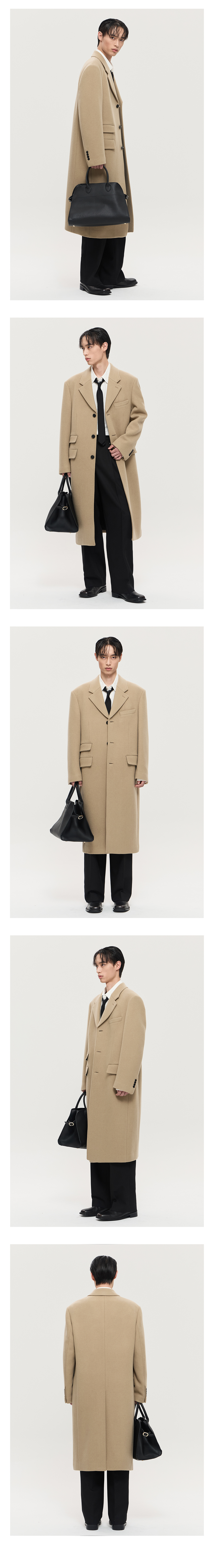 티엔지티 베이지 오버핏 캐시미어 3버튼 테일러드 코트