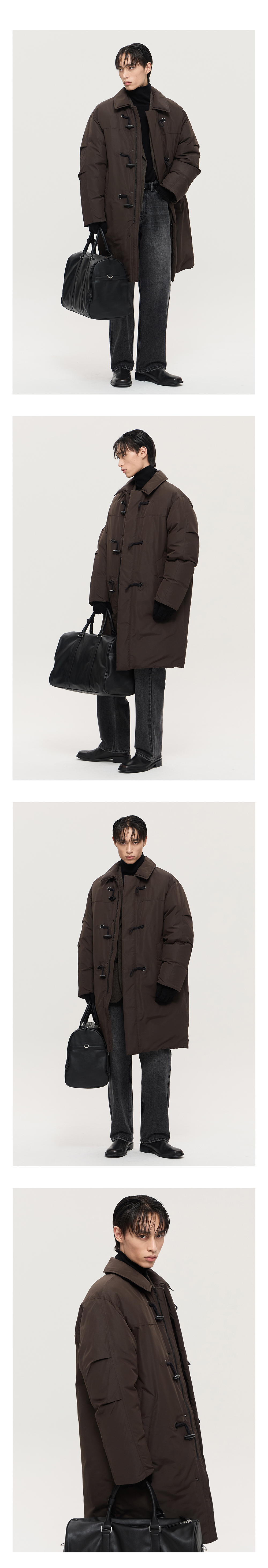 티엔지티 유러피언 구스 브라운 더플 롱 구스다운 점퍼