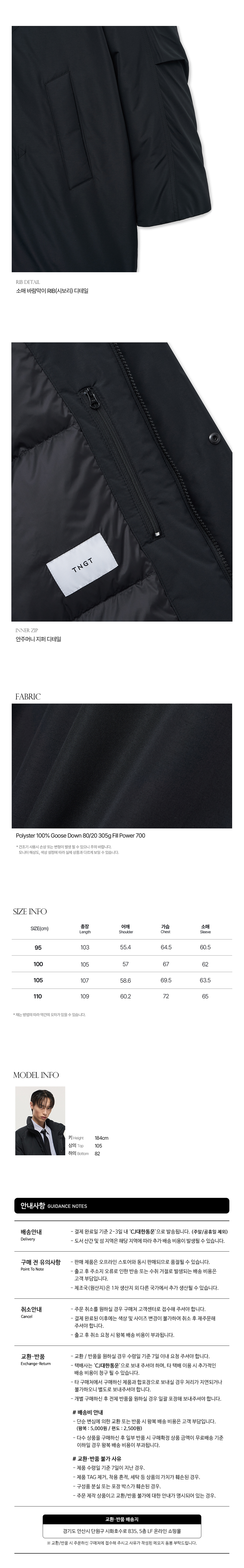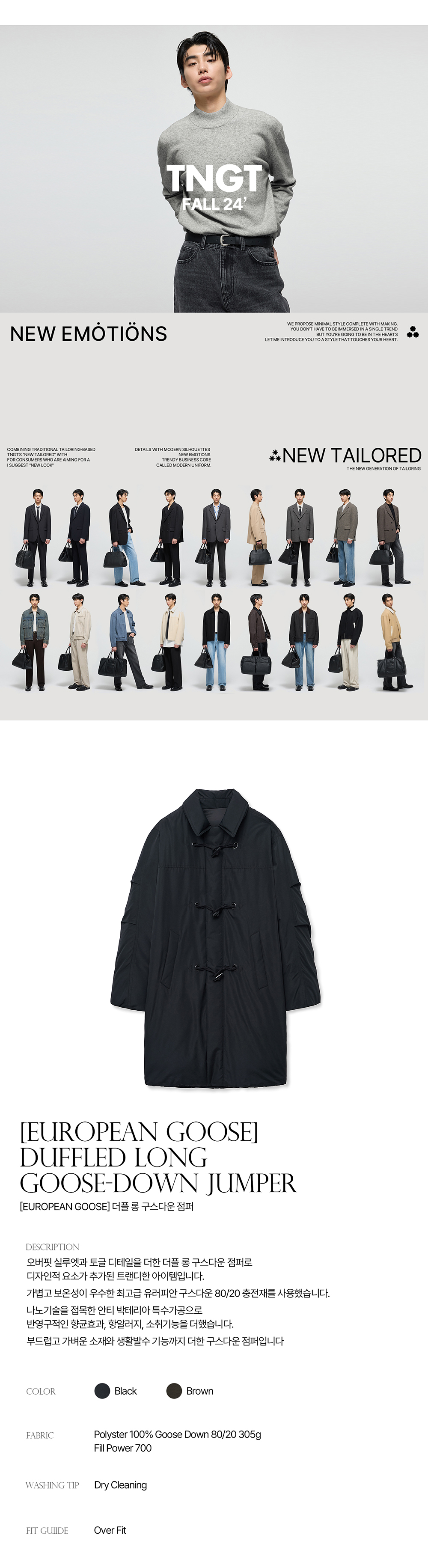 티엔지티 유러피언 구스 블랙 더플 롱 구스다운 점퍼
