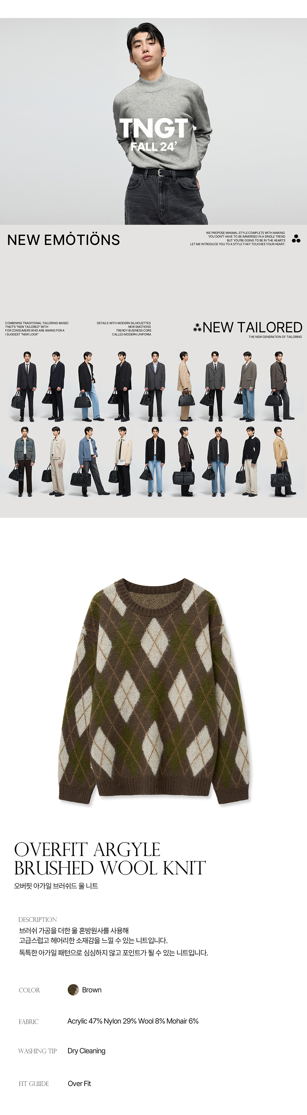 티엔지티 브라운 오버핏 아가일 브러쉬드 울 니트
