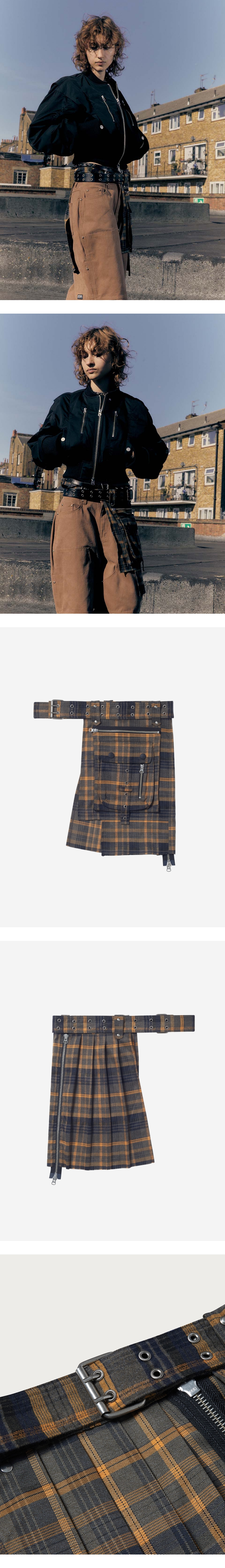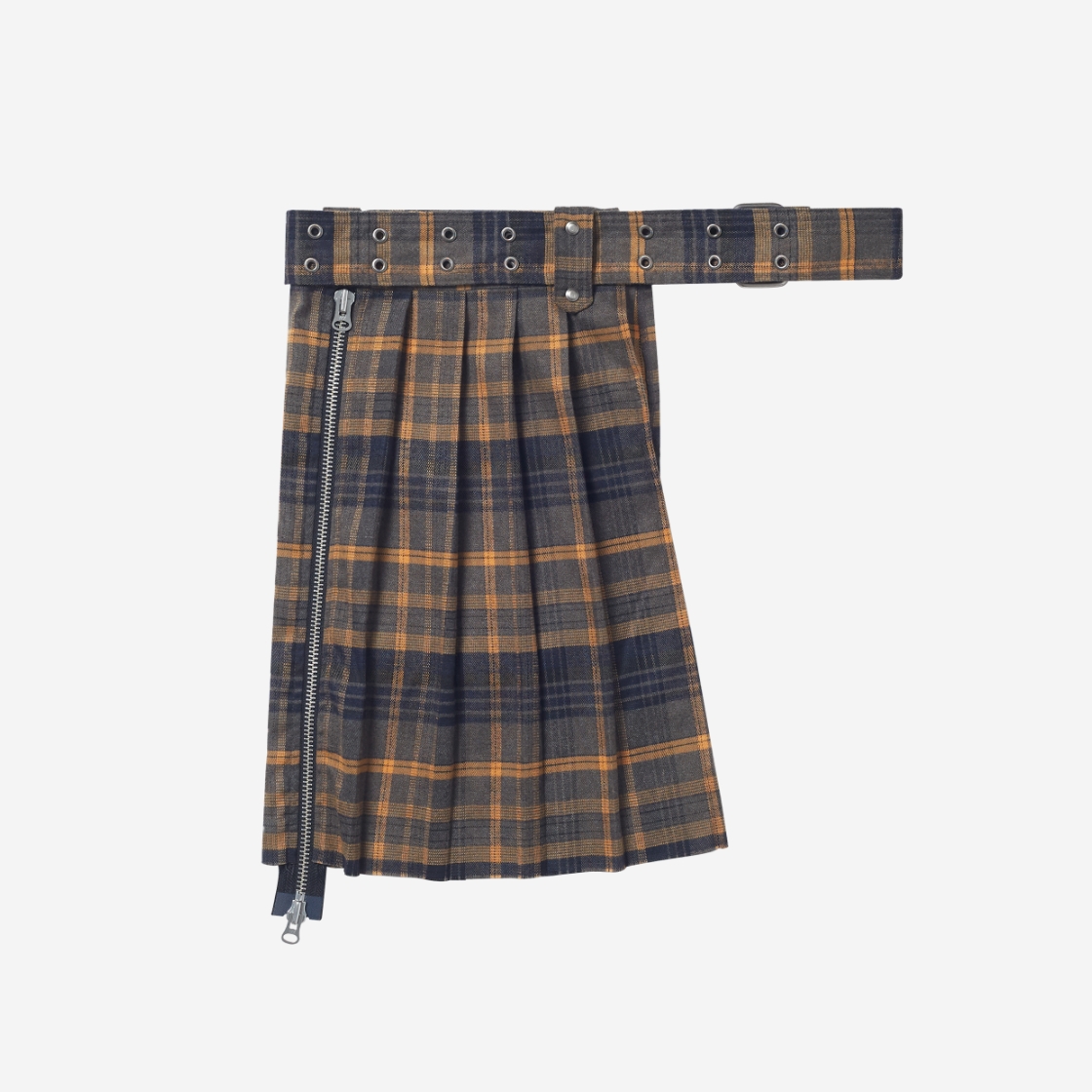 베이컨트 아카이브 바제스 레이어드 스커트 벨트 체크 그레이