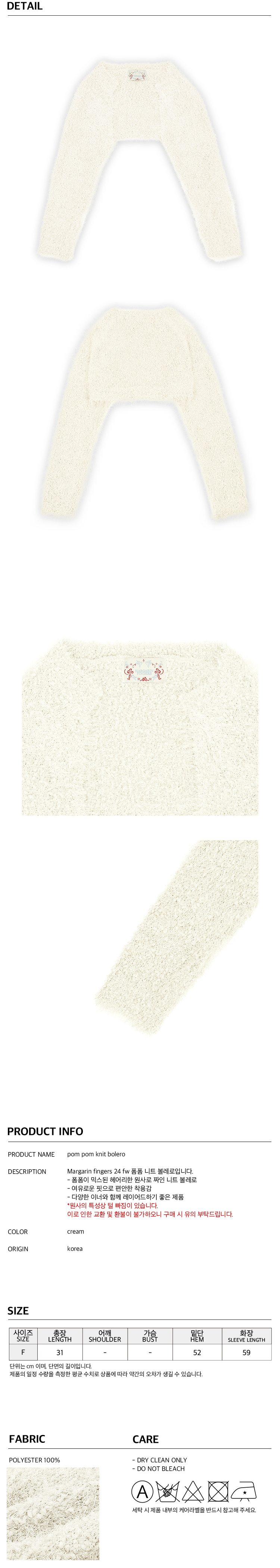 마가린핑거스 폼폼 니트 볼레로 크림