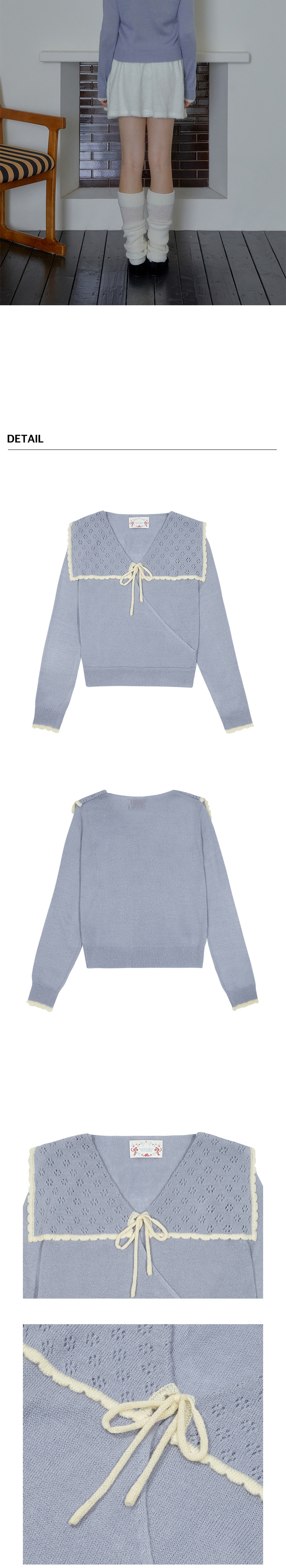 마가린핑거스 리본 세일러 니트 라이트 블루