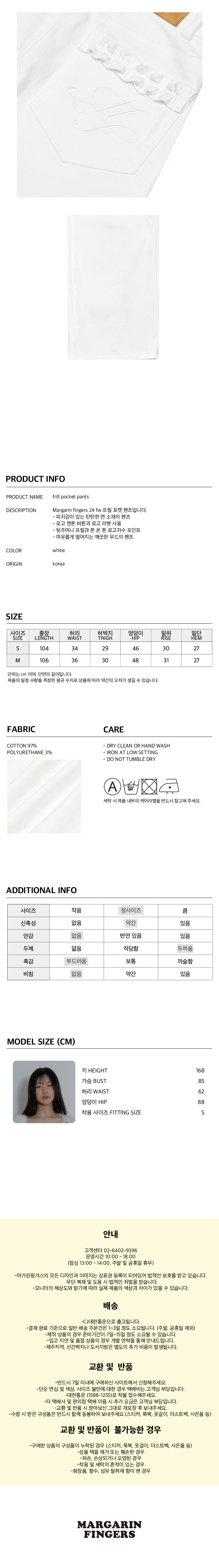 [예약 배송] 마가린핑거스 프릴 포켓 팬츠 화이츠