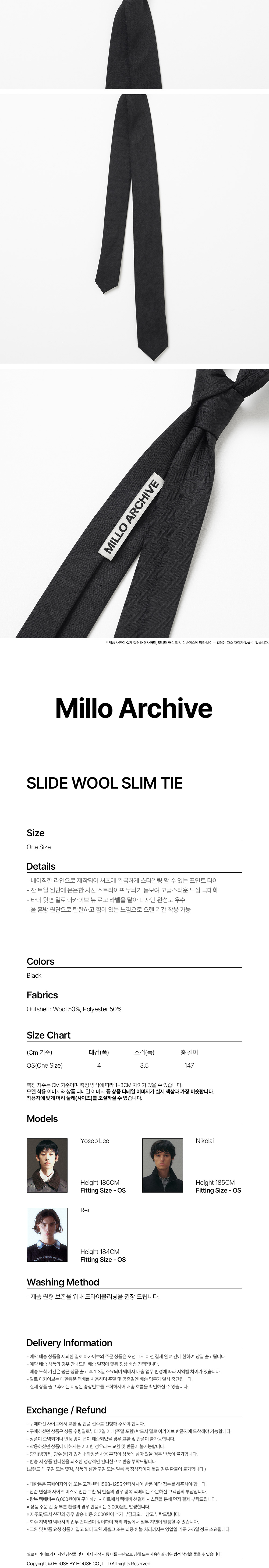 밀로 아카이브 슬라이드 울 슬림 타이 블랙