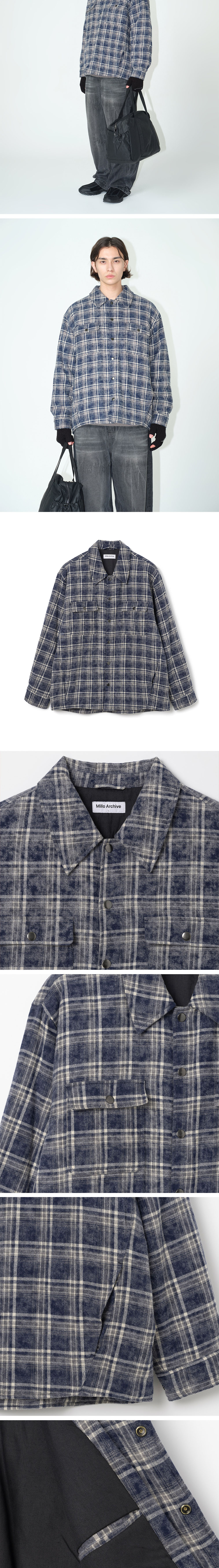 밀로 아카이브 플레이드 체크 패딩 셔츠 빈티지 네이비