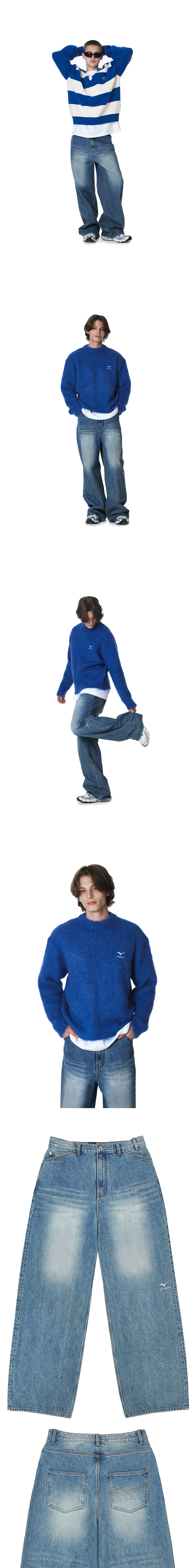 에스티유 X 미즈노 로고 엠브로더리 데님 팬츠 미드블루
