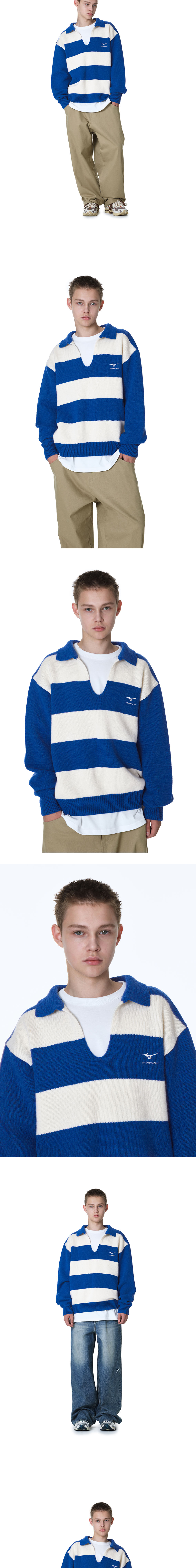 STU X MIZUNO Logo Embroidery Stripe Collar Knit Blue