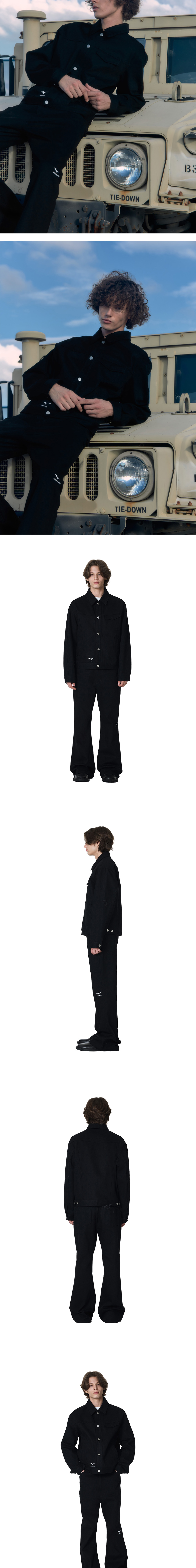 STU X MIZUNO Logo Embroidery Denim Jacket Black