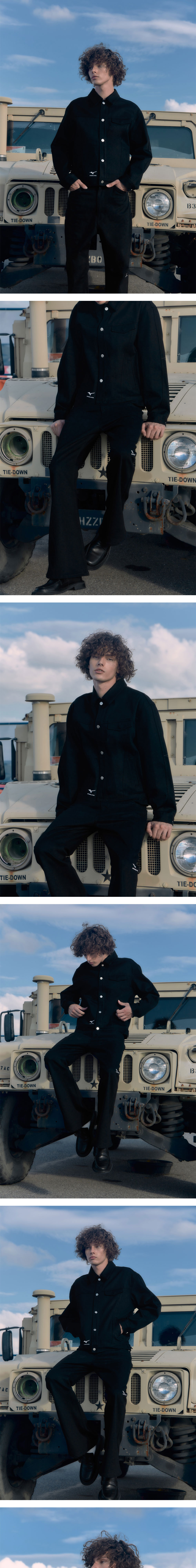에스티유 X 미즈노 로고 엠브로더리 데님 자켓 블랙