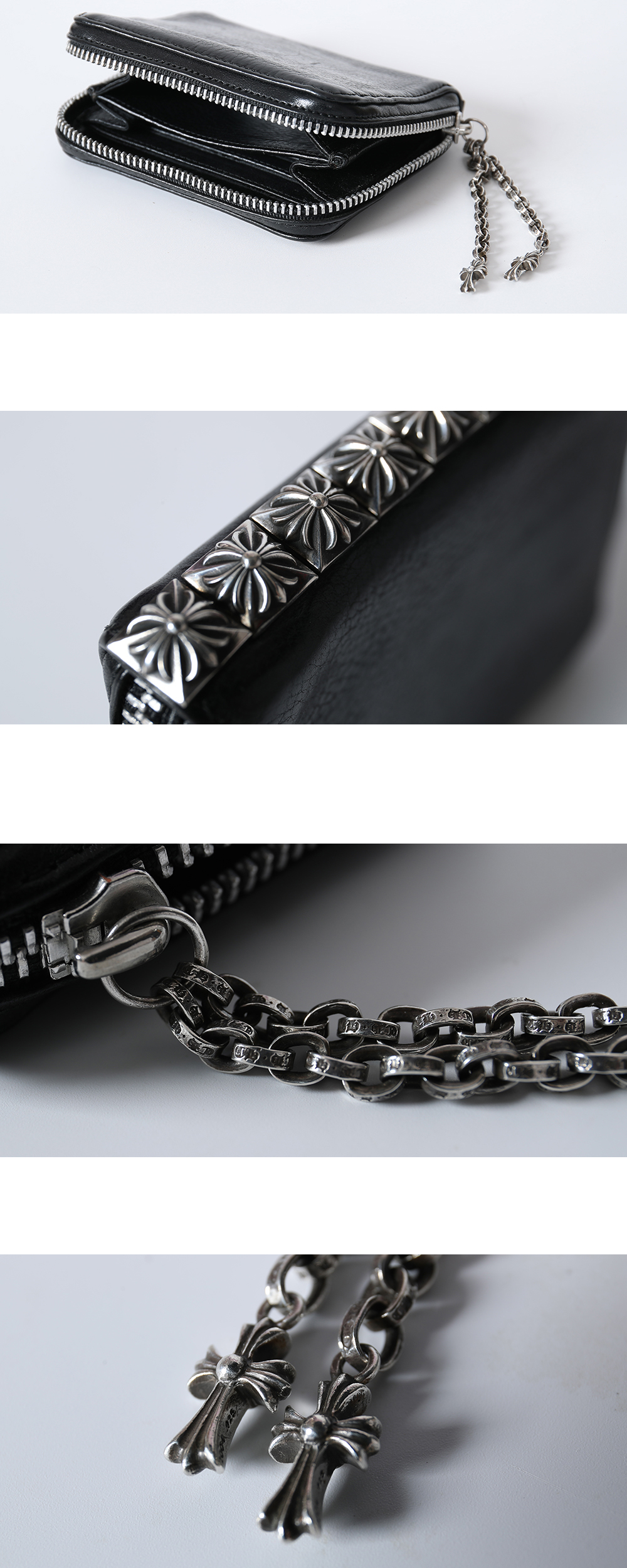 한스룸 크롬하츠 3 사이드 지퍼 피라미드 스터드 레더 월렛