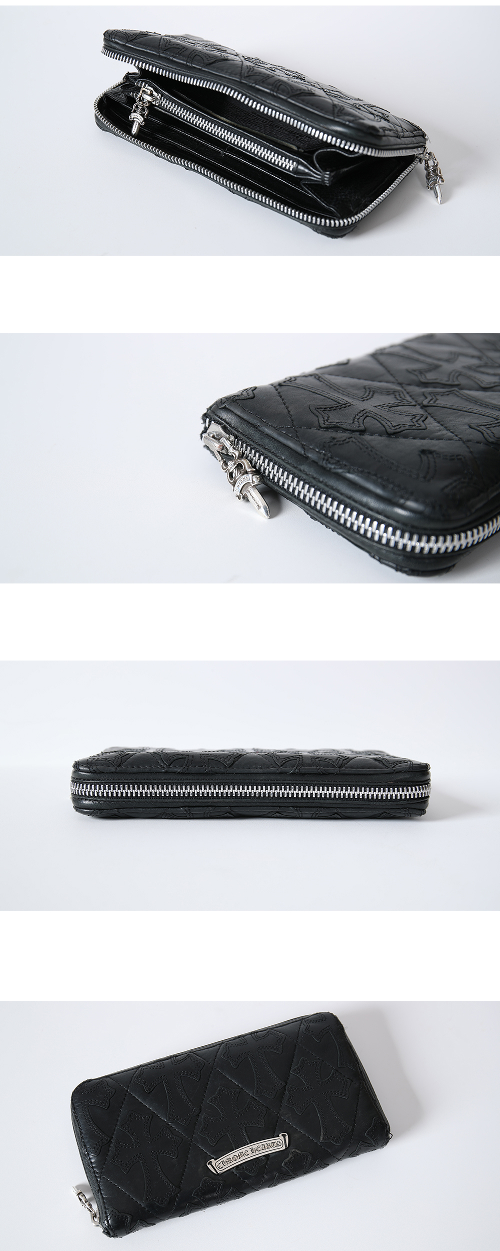 Chrome Hearts Cemetery Cross Quilting Leather Wallet Black 크롬하츠 세메터리 크로스 퀼팅 레더 월렛 블랙 *상품 상태 중고 상품 B등급 *소재 가죽, 925실버 *사이즈: OS (측정 방법에 따라 사이즈에 일부 오차가 있을 수 있습니다.) *구성품: 자체 보증서, 폴리싱천