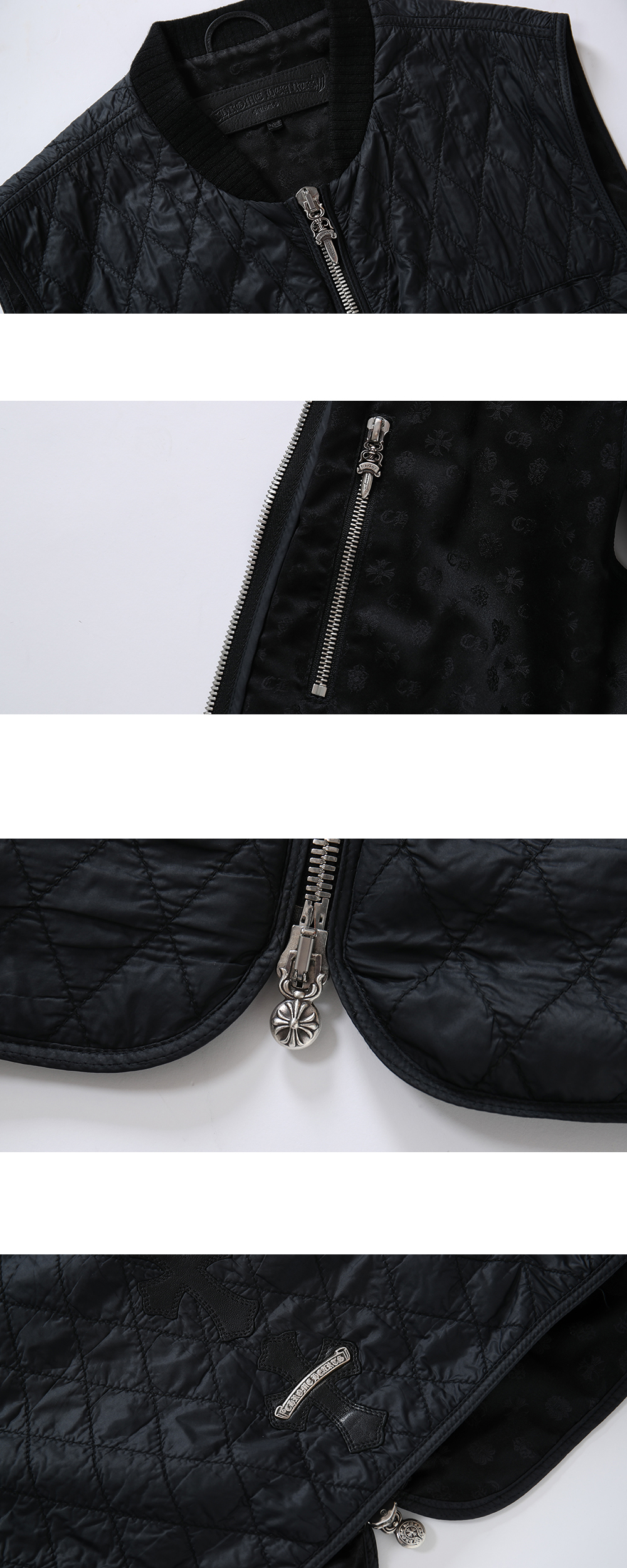 Chrome Hearts Papa Cross Quilted Nylon Vest 크롬하츠 파파 크로스 퀄티드 나일론 베스트 *상품 상태 중고 상품 B등급 *소재 나일론, 캐시미어, 양가죽, 925실버 *사이즈: M (측정 방법에 따라 사이즈에 일부 오차가 있을 수 있습니다.) *구성품: 자체 보증서, 폴리싱천