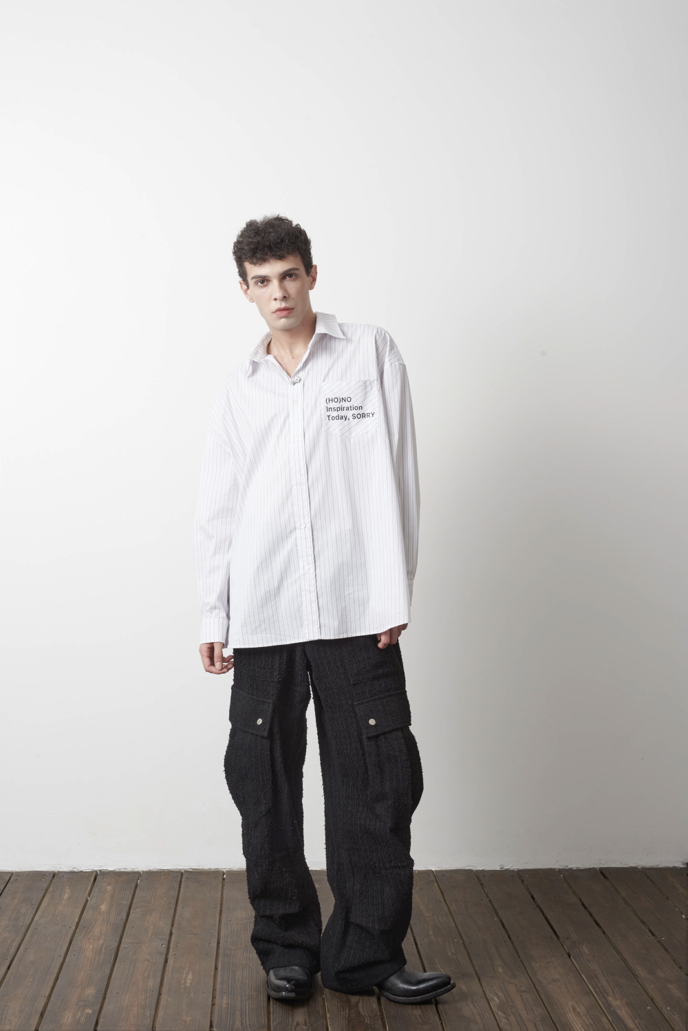 호노 리포트 타이포 셔츠 화이트 스트라이프