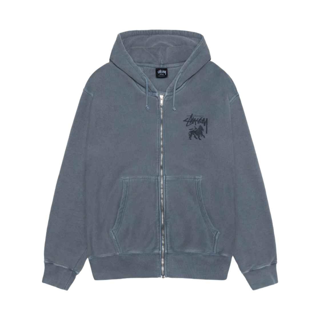 스투시 라스타 라이언 피그먼트 다이드 집 후드 네이비