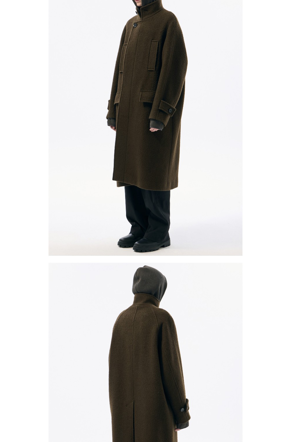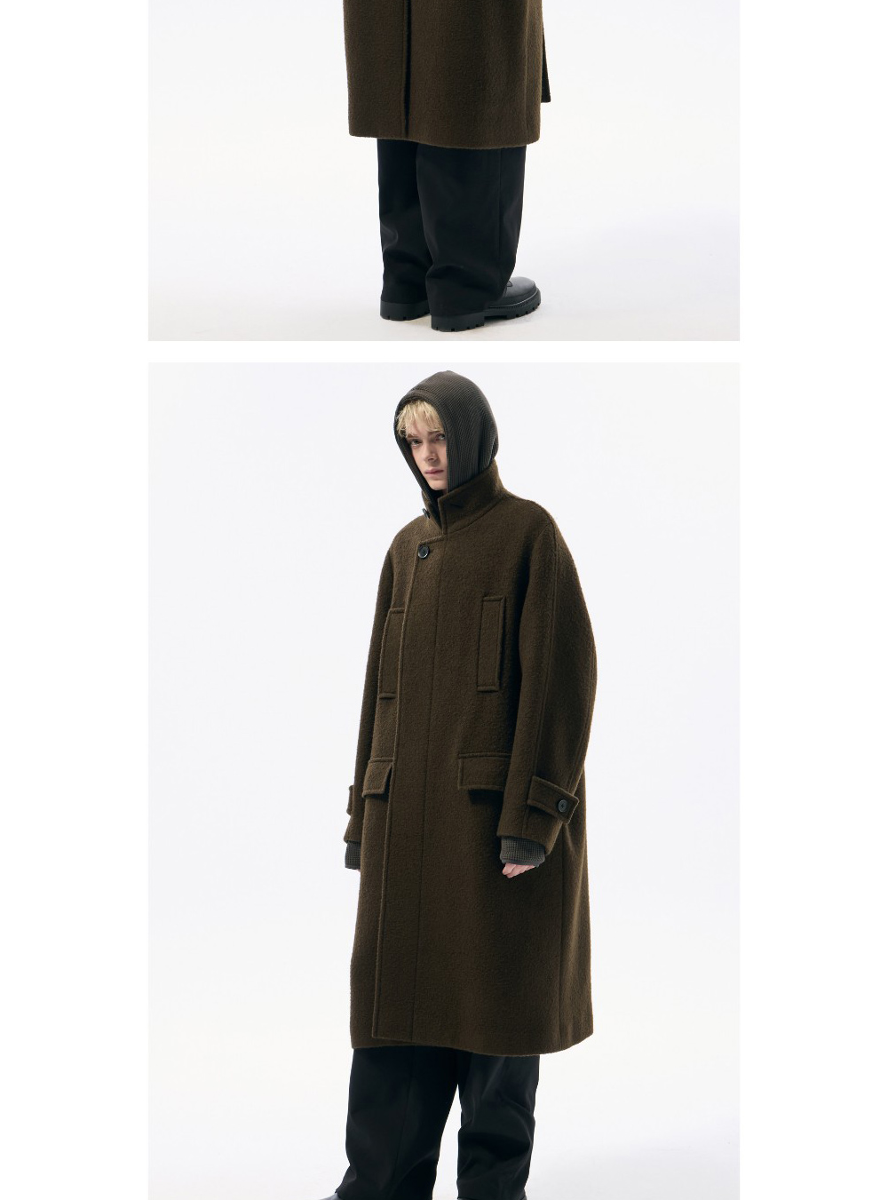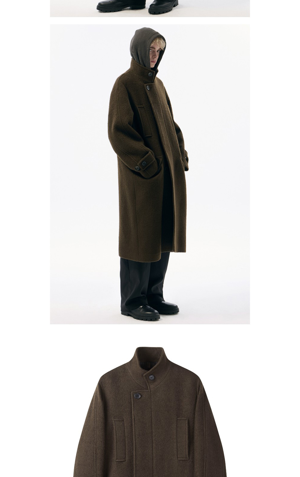 커스텀멜로우 울 밴드 칼라 코트 브라운