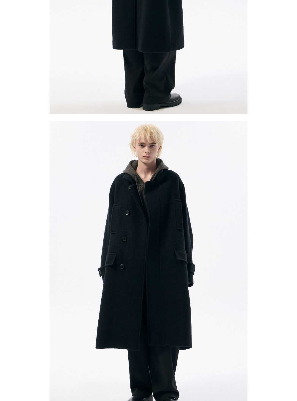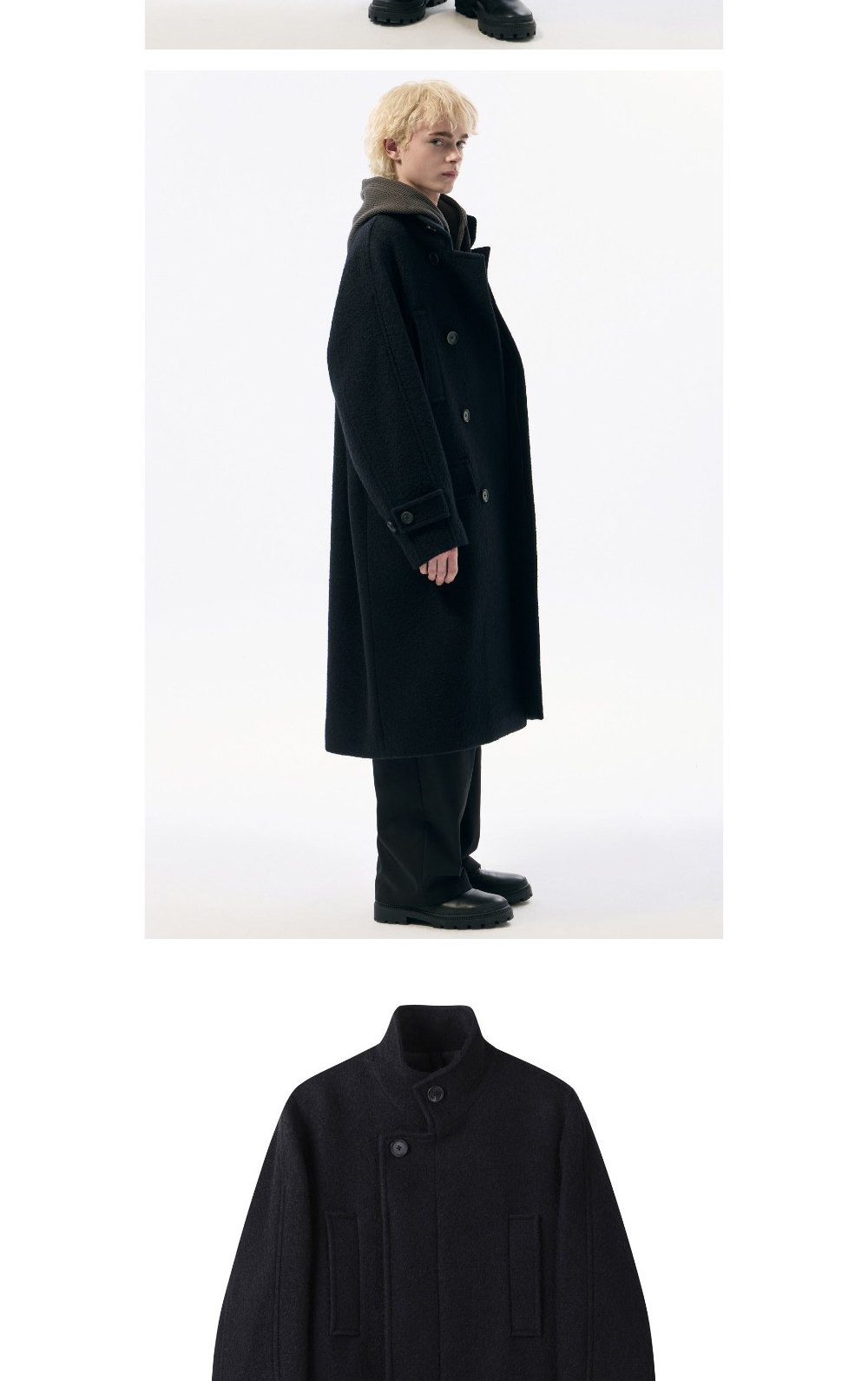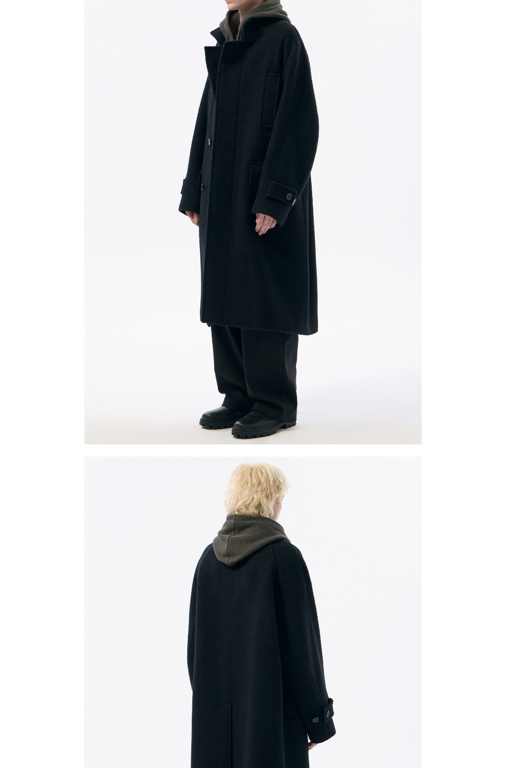 커스텀멜로우 울 밴드 칼라 코트 블랙