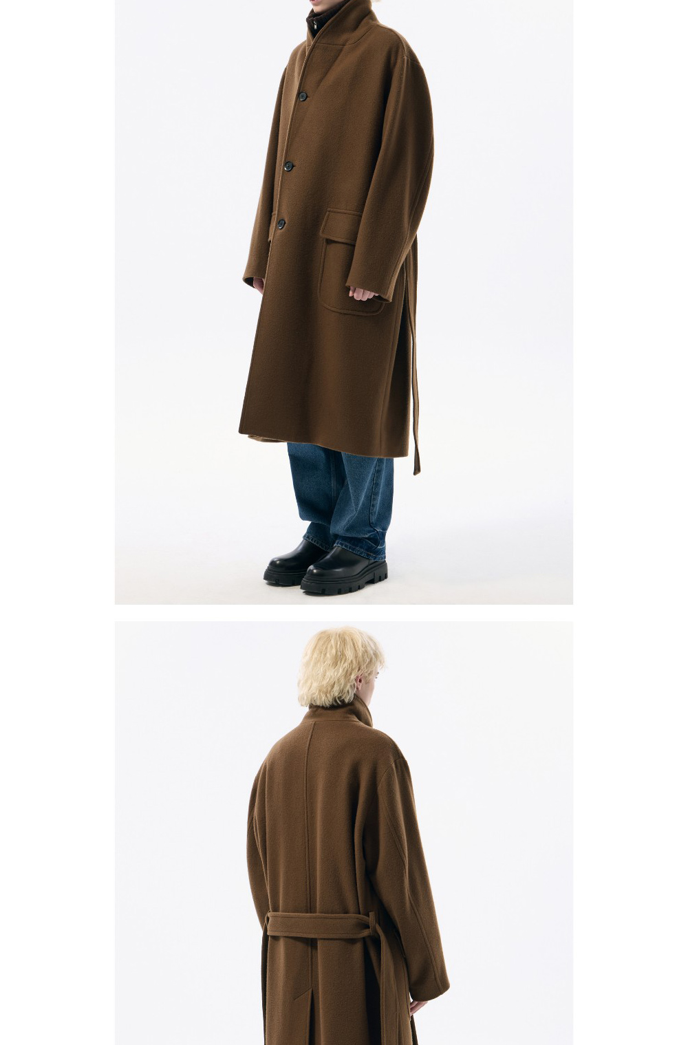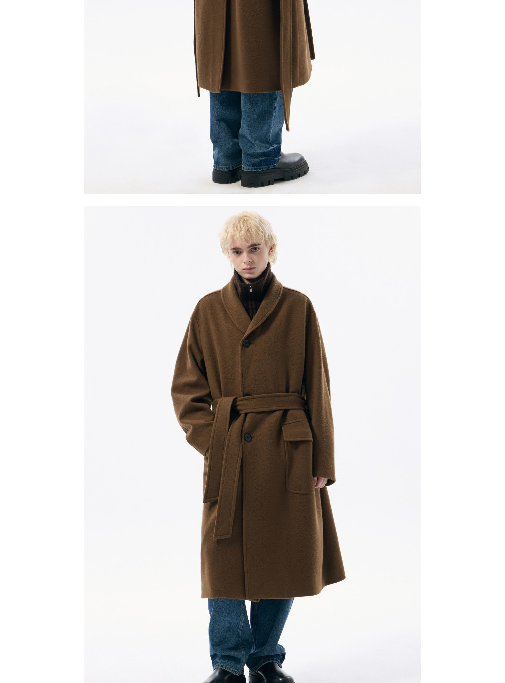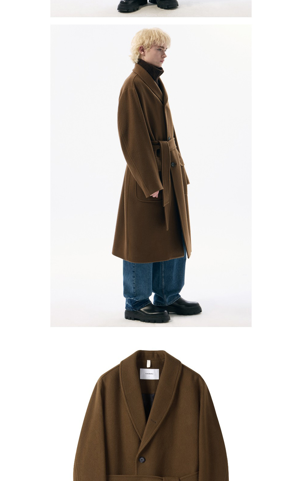 커스텀멜로우 울 숄 칼라 코트 브라운