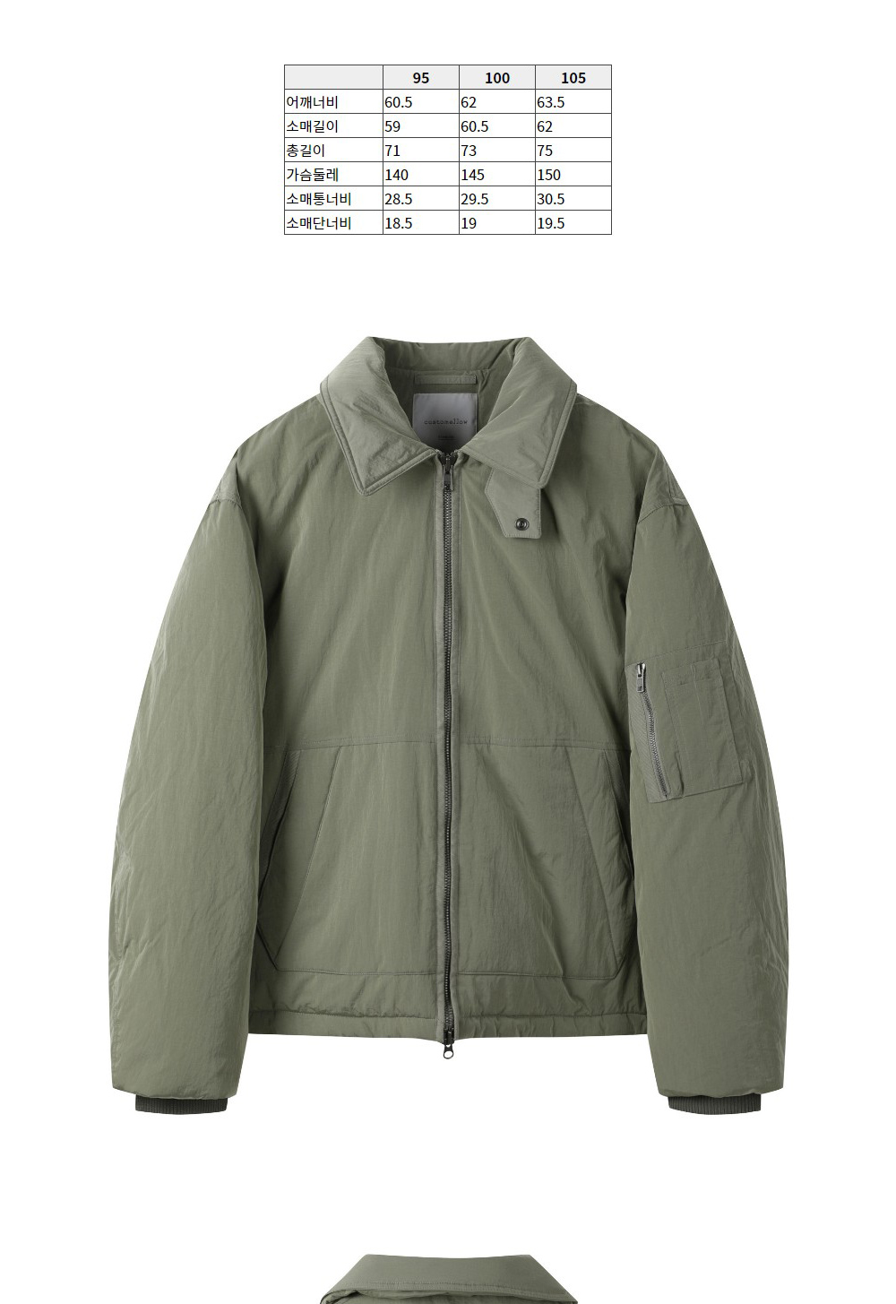커스텀멜로우 숏 다운 봄버 카키