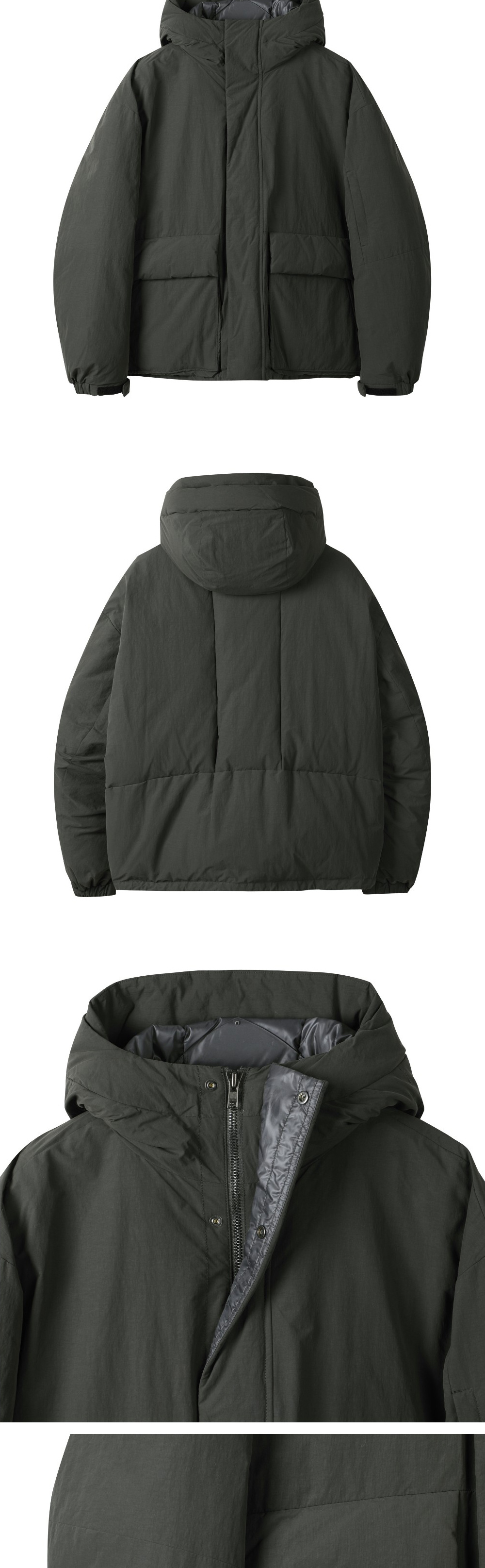 커스텀멜로우 후드 다운 봄버 다크 그레이