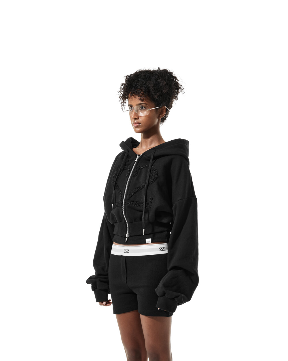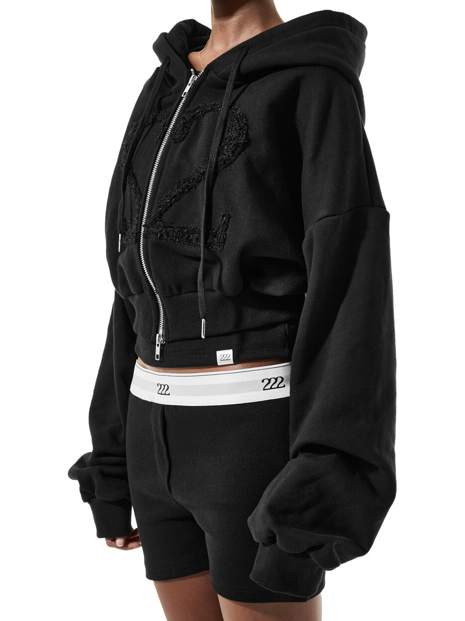 -크롭기장 -후디 포인트 ‘222’ 라벨 -222’S2’핸드자수 디테일포인트 -ykk 2way지퍼 사용 -바이오워싱가공,부드럽고 쾌척한 촉감 -옷의 뒤틀림변형을 잡아주는 텐타가공, 원단의 수축률을 최소화한 덤블가공원단