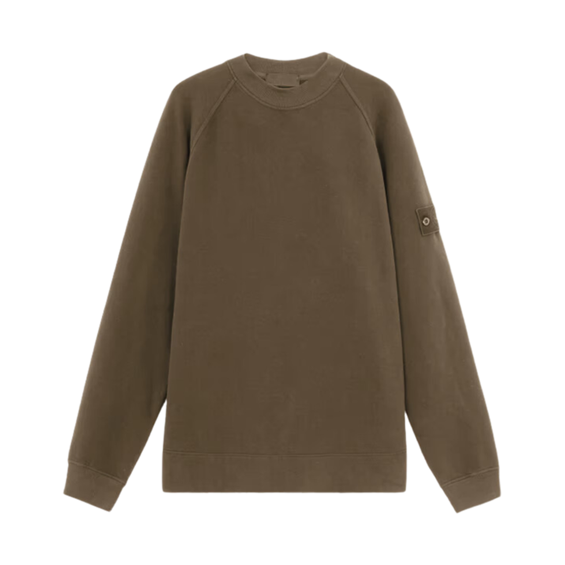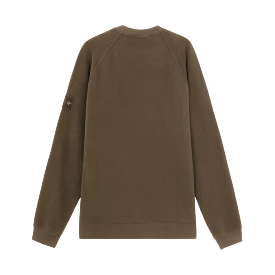 스톤 아일랜드 629F7 고스트 스트레치 오가닉 코튼 플리스 크루넥 스웨트셔츠 위드 립드 디테일 밀리터리 그린 - 24FW