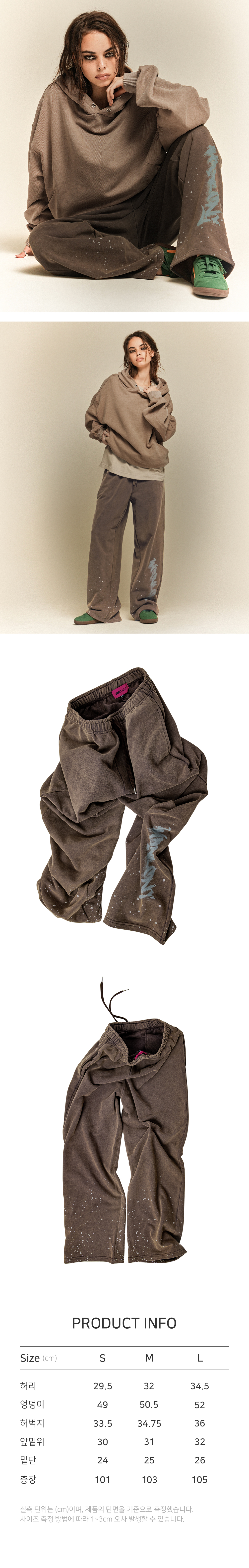 로타 소울 스톤 워싱 스웻 팬츠 빈티지 컬러감과 페인트 그래픽을 통해 스트릿 무드가 돋보이는 팬츠 FEATURE - 와이드 핏 실루엣(Wide fit Silhouette) - 브러쉬 페인트 로타 소울 그래픽 - 피그먼트 & 스톤 워싱 기법 - 로타 소울 스톤 워싱 스웻 팬츠와 셋업 연출 가능