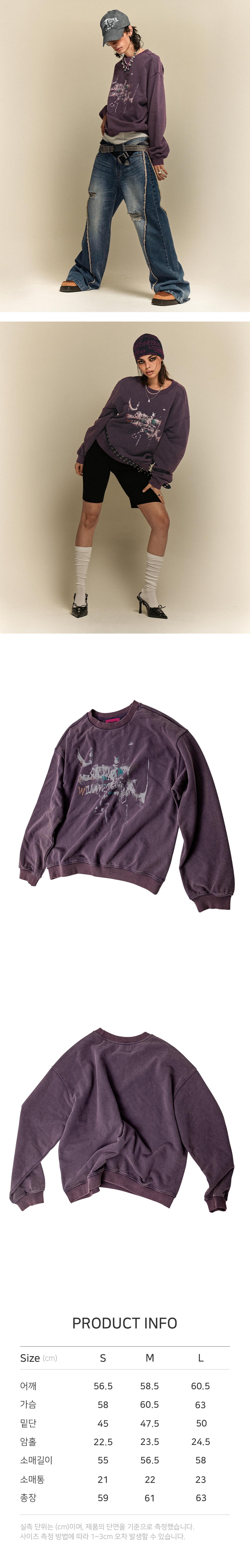 멜로우 그래픽 빈티지 워싱 스웻 셔츠 퍼플