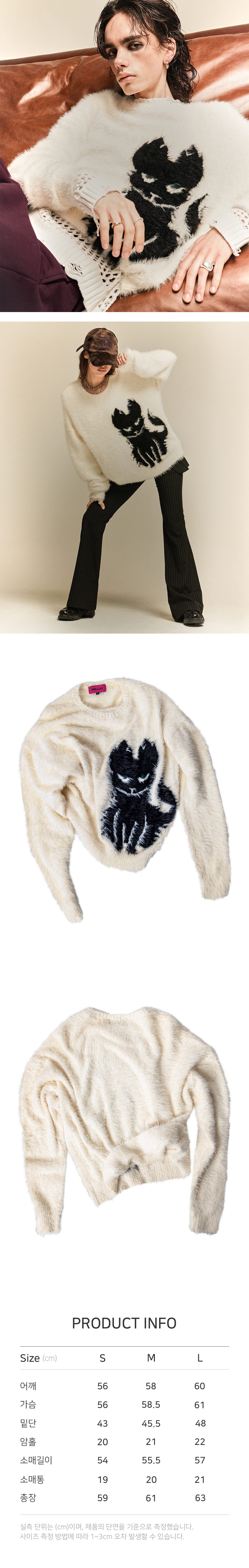 부드러운 촉감의 폴리 소재의 니트 탑 입니다. 시크한 우룩희 캐릭터 포인트로 세련되면서도 포근함을 선사합니다. FEATURE - 루즈 핏 실루엣 (Loose Fit Silhouette) - 날카롭고 시크 요염한 우룩희 캐릭터 활용 - 폴리 소재
