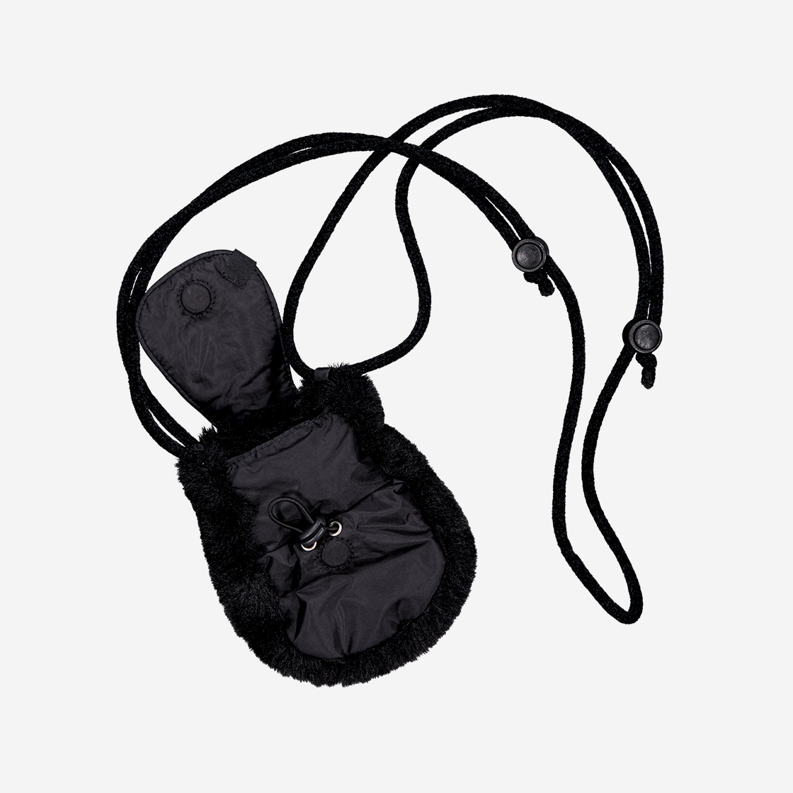 휴대성이 뛰어나며 고급스러운 퍼 소재로 여성스러움이 강조되는 미니 백 FEATURE - 퍼 & 나일론 소재 - 멜로우 로고 라벨 - 포켓 스트링, 스토퍼 디테일 - 자유로운 길이 조절 가능 - 자석 단추