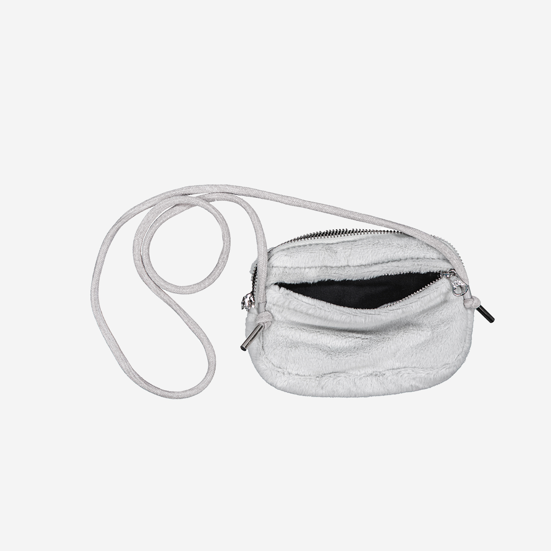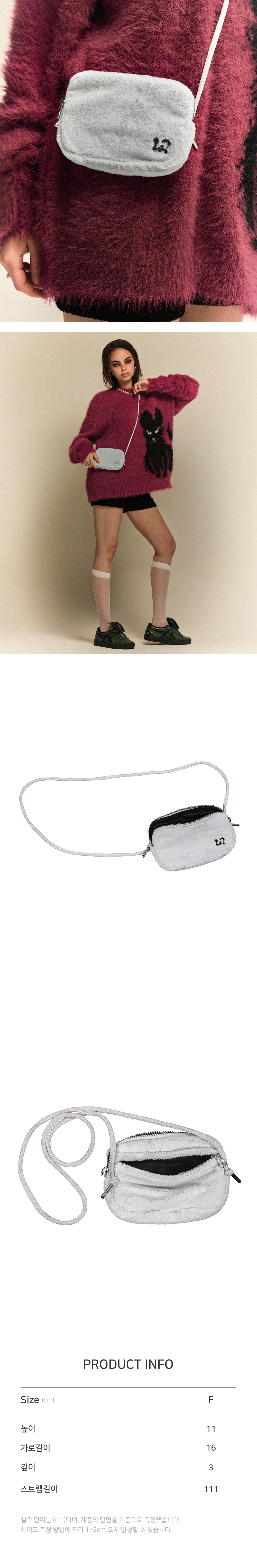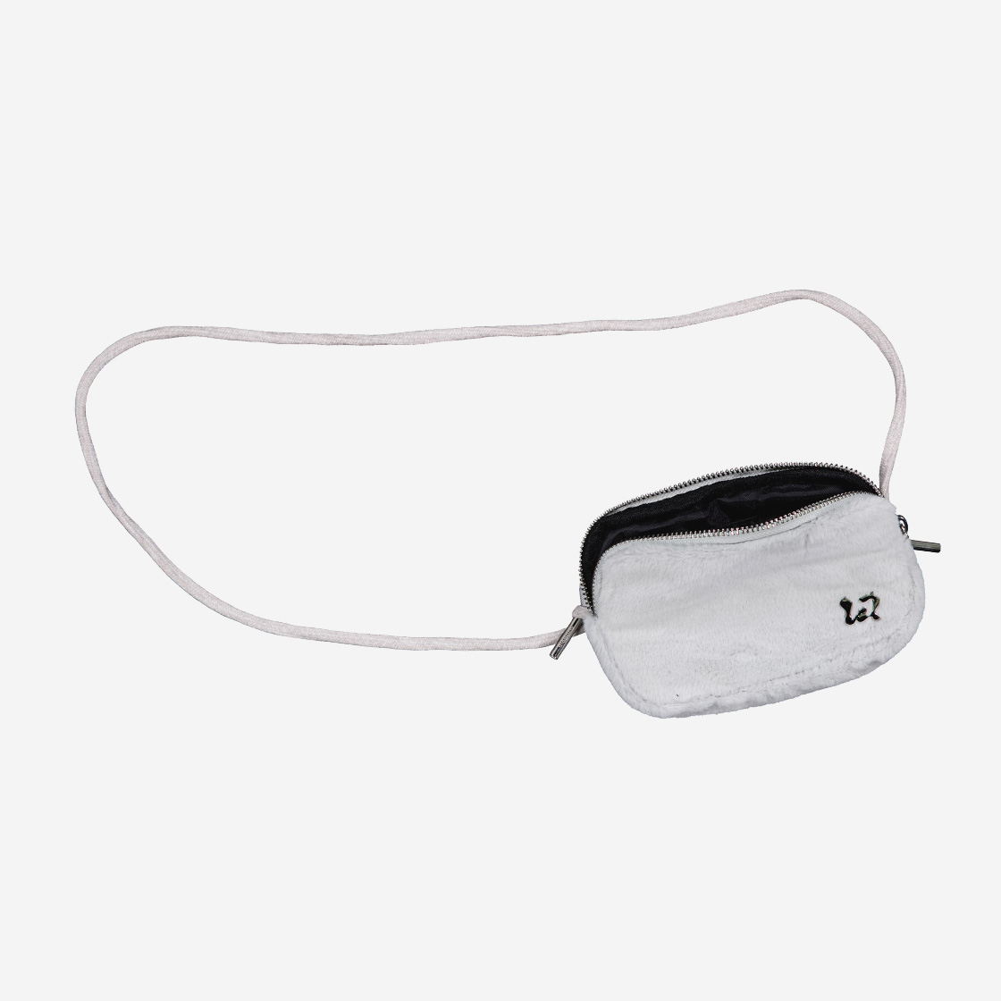 휴대성이 좋으며 고급스러운 퍼 소재의 미니 파우치 백 FEATURE - 부드러운 퍼 소재 원단 - 멜로우 금형 로고 - 벨벳 소재 스트링 사용 및 각인 끝팁 디테일 - 로고 각인 지퍼 - 내부 이중 포켓